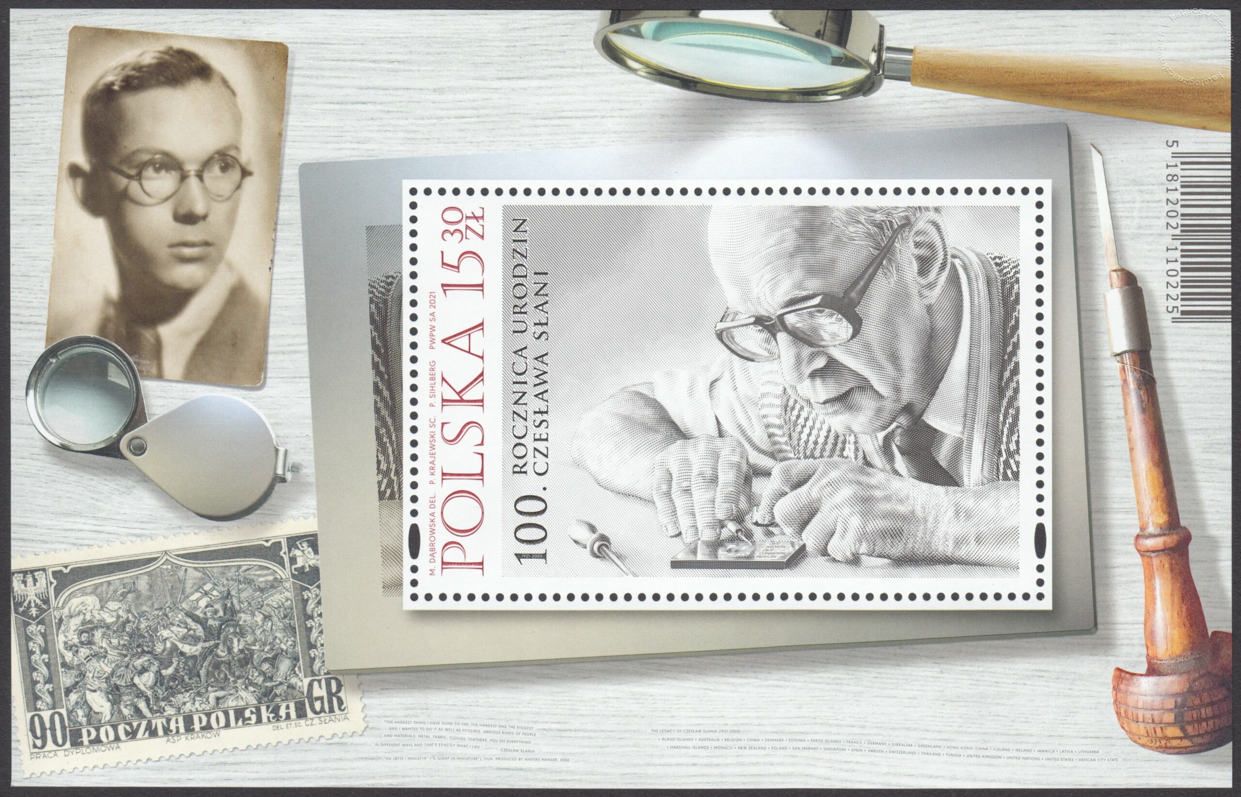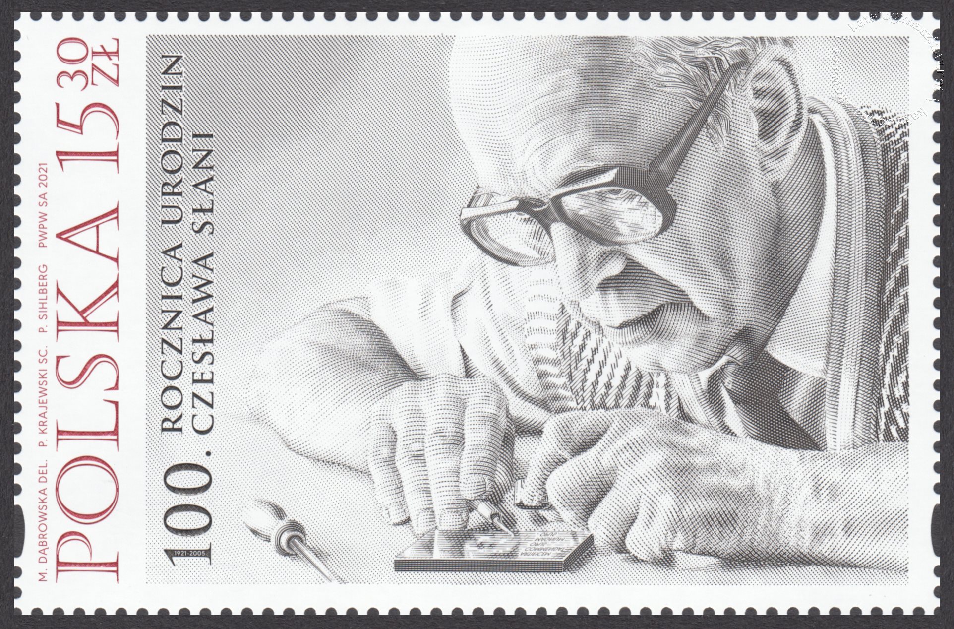 Opis: Na znaczku przedstawiono wizerunek Czesława Słąni podczas wykonywania rytu znaczka.