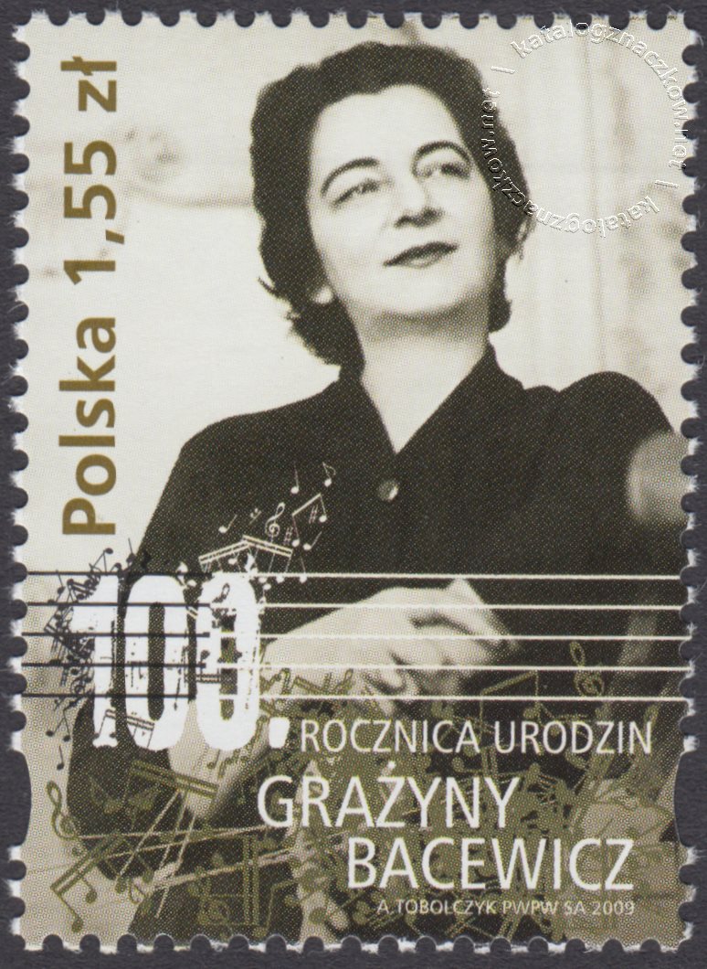 Opis: Grażyny Bacewicz oraz pięciolinia z nutami