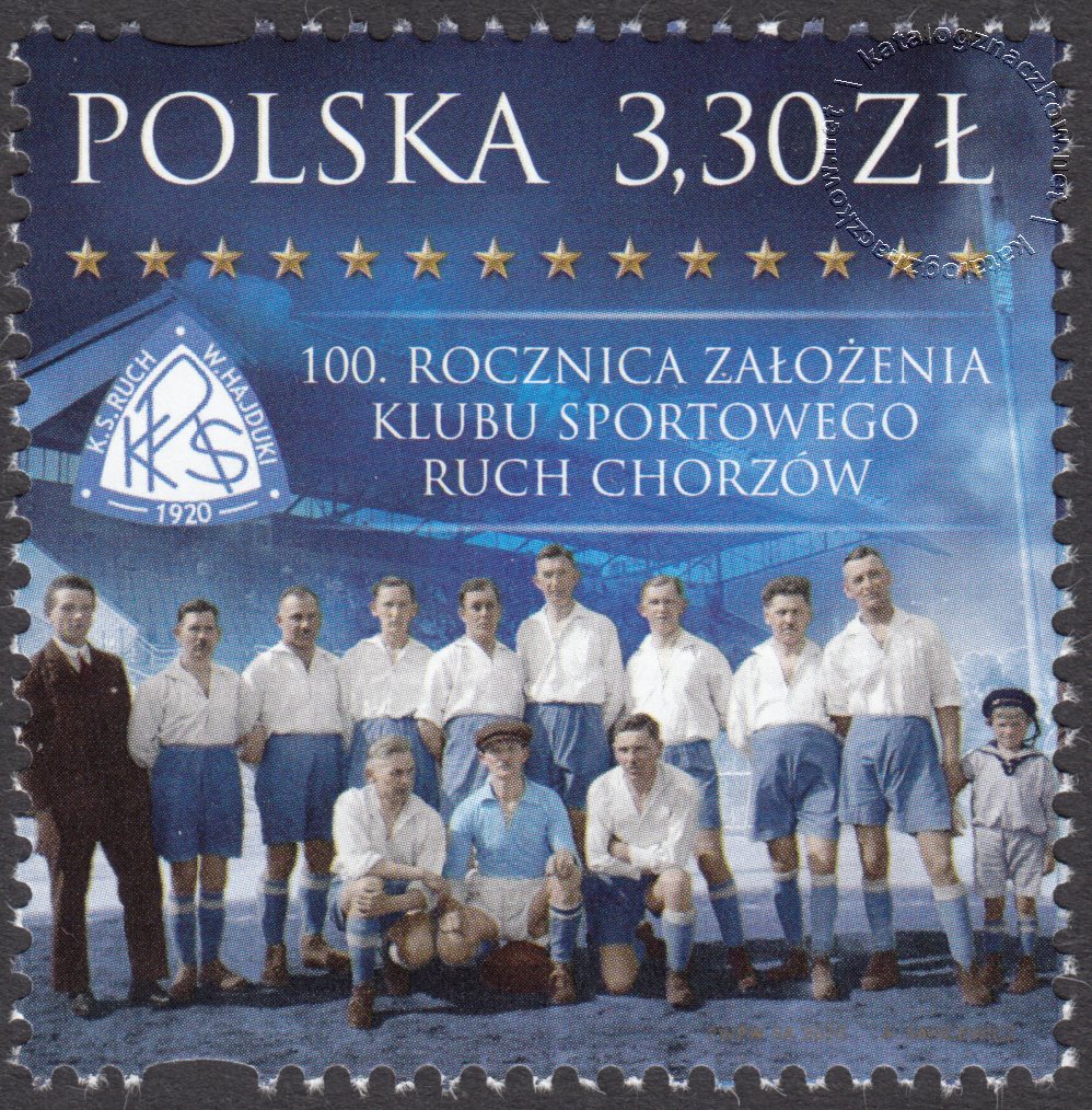 Opis: Drużyna Klubu Sportowego Ruch Wielkie Hajduki (od 1939 roku Klub Sportowy Ruch Chorzów) z fotografii pochodzącej z początku lat 20. ubiegłego wieku