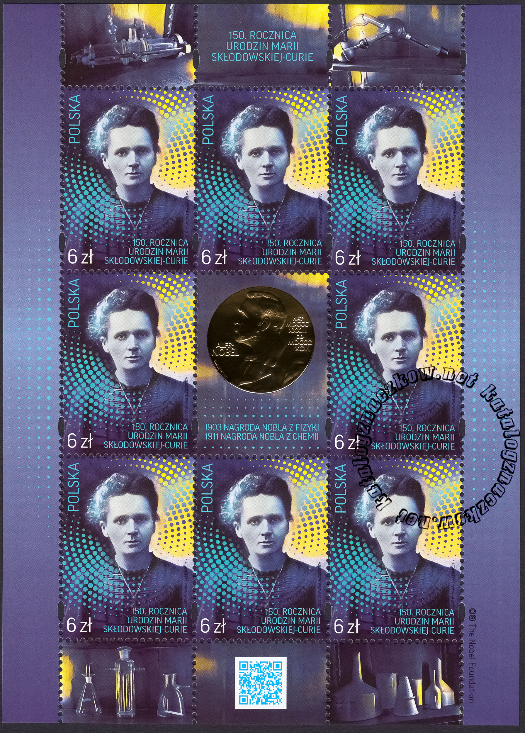 Opis: Na znaczku przedstawiono wizerunek Marii Skłodowskiej-Curie.