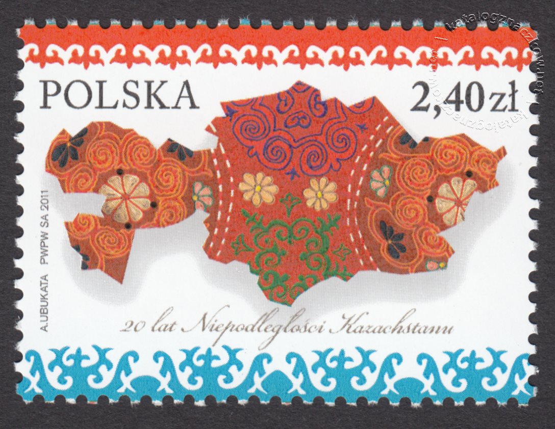Opis: Zarys mapy Kazachstanu i dywanowe motywy graficzne