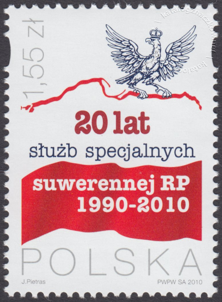 Opis: Orzeł ze znaku Agencji Bezpieczeństwa Wewnętrznego i fragment konturu z barwami RP