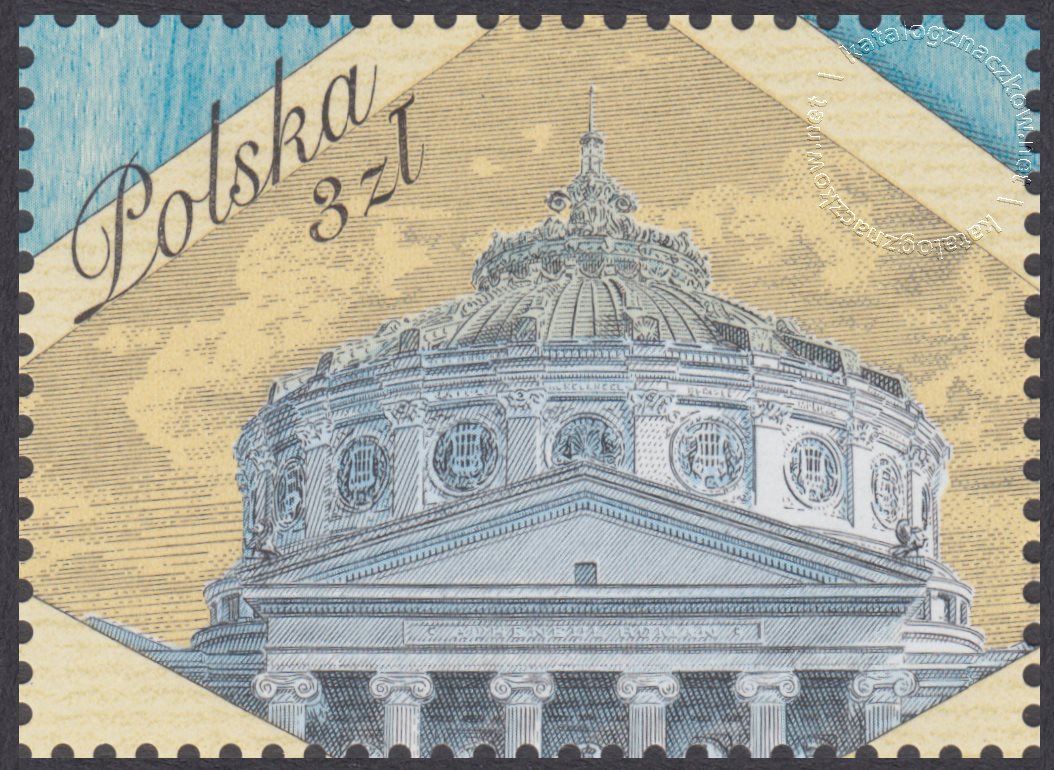 Opis: Ateneum Rumuńskie na tle koperty