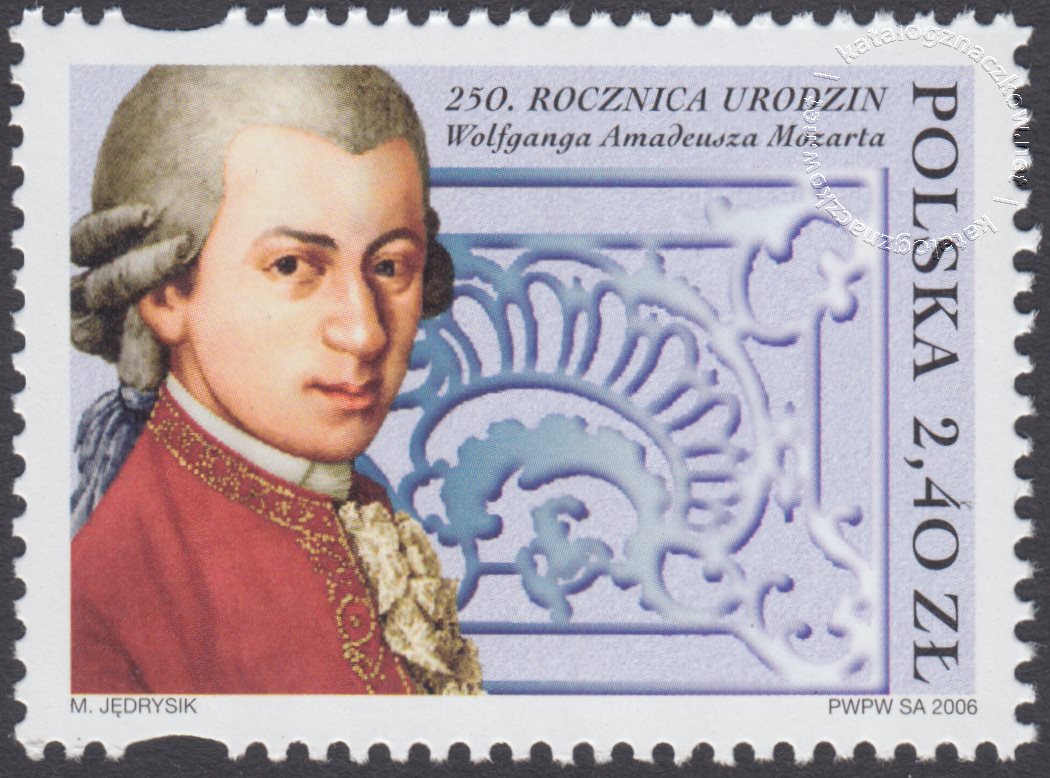 Opis: Podobizna Wolfganga Amadeusza Mozarta