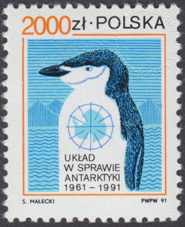 Opis: Symboliczny pingwin na tle gór lodowych, emblemat Układu