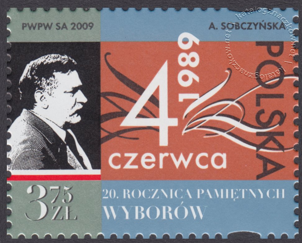 Opis: Na znaczku przedstawiono Lecha Wałęsę z elementami ornamentacyjnymi