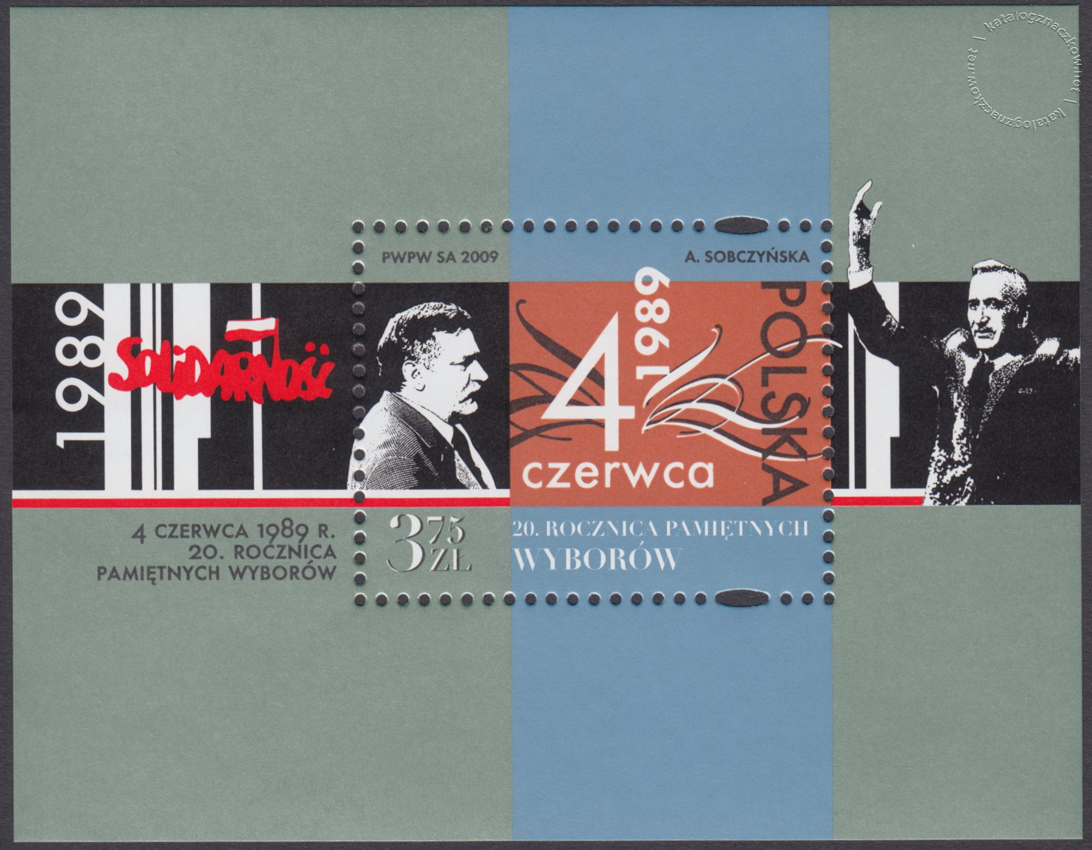 Opis: Na znaczku przedstawiono Lecha Wałęsę z elementami ornamentacyjnymi