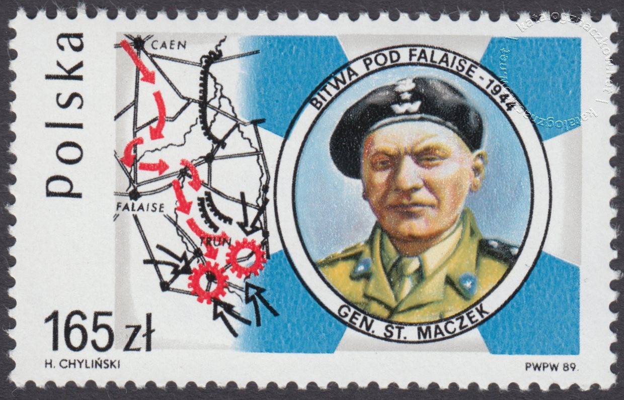 Opis: Gen. Stanisław Maczek (1892-1994); szkic bitwy pod Falaise