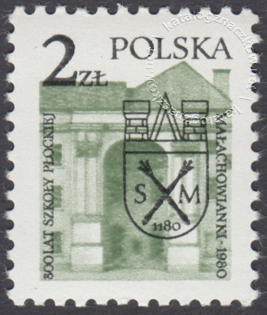 Opis: Małachowianka – herb szkoły na tle gmachu