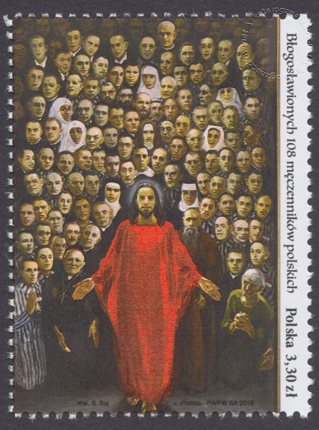 Opis: Obraz beatyfikacyjny 108 męczenników polskich II wojny światowej, autorstwa Stanisława Baja, znajdujący się obecnie w kaplicy Sanktuarium Maryjnego w Licheniu