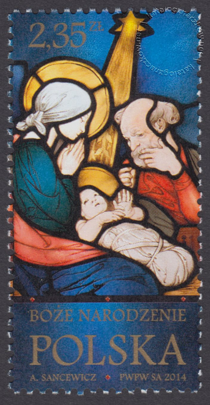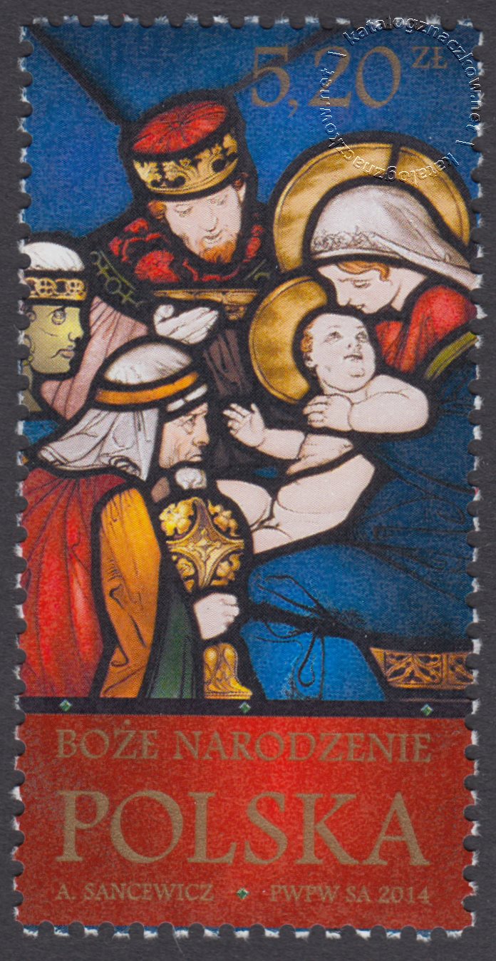 Opis: Scena z zespołu witraży: Sceny z życia Marii Stanisława Wyspiańskiego i Józefa Mehoffers: Pokłon Trzech Króli
