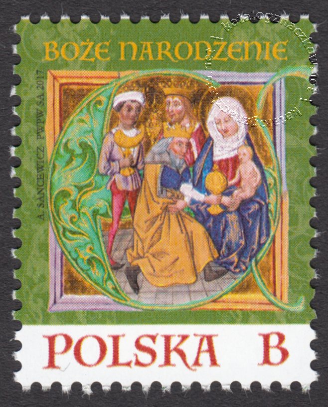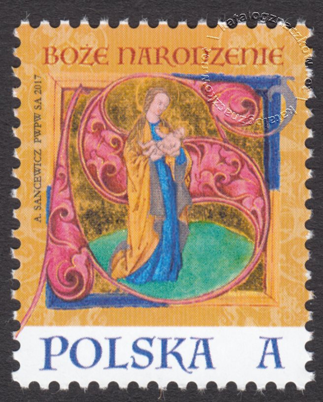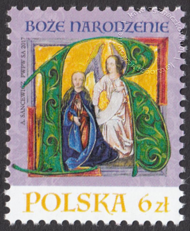Opis: Na znaczku przedstawiono grafiki pochodzące z Mszału Olbrachtowego, Zwiastowanie