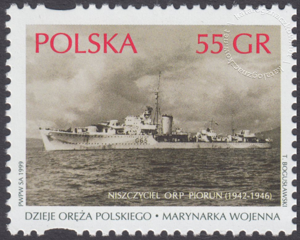 Opis: Niszczyciel ORP Piorun z okresu II wojny światowej