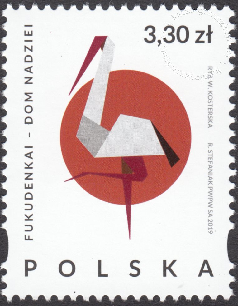 Opis: Wykonany techniką origami, bocian biały na tle flagi Japonii