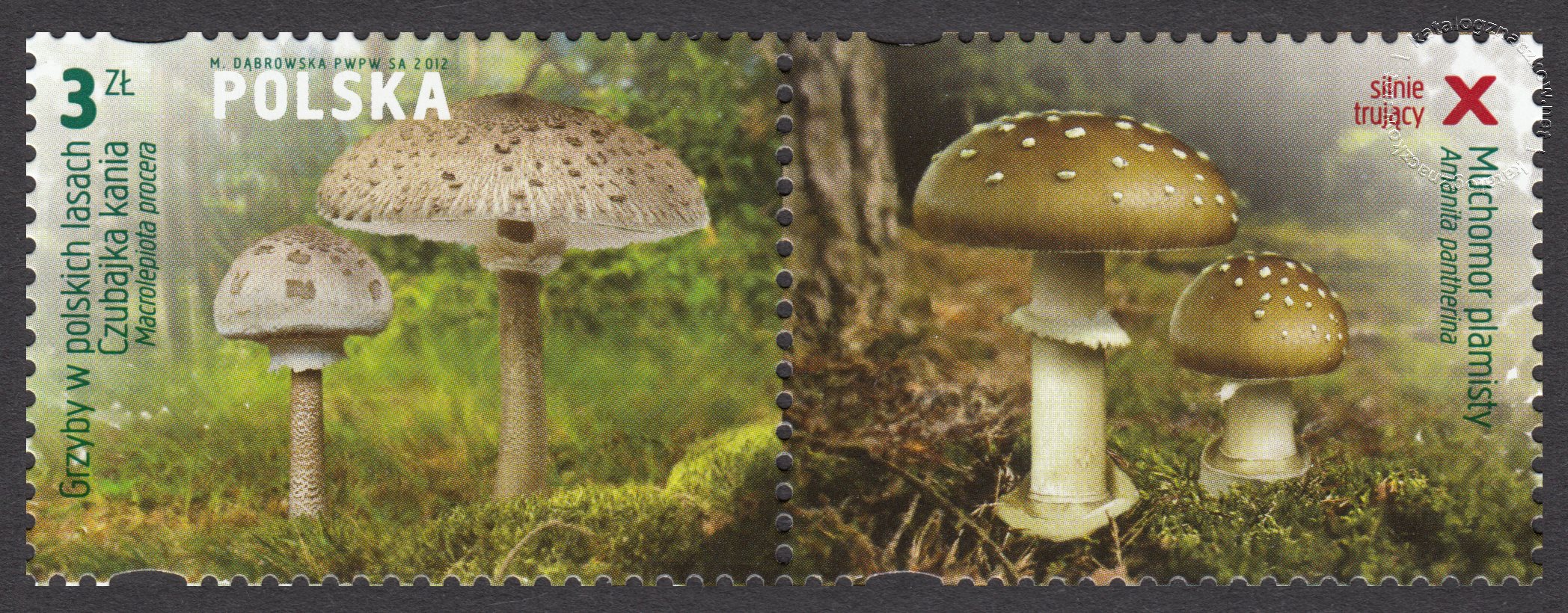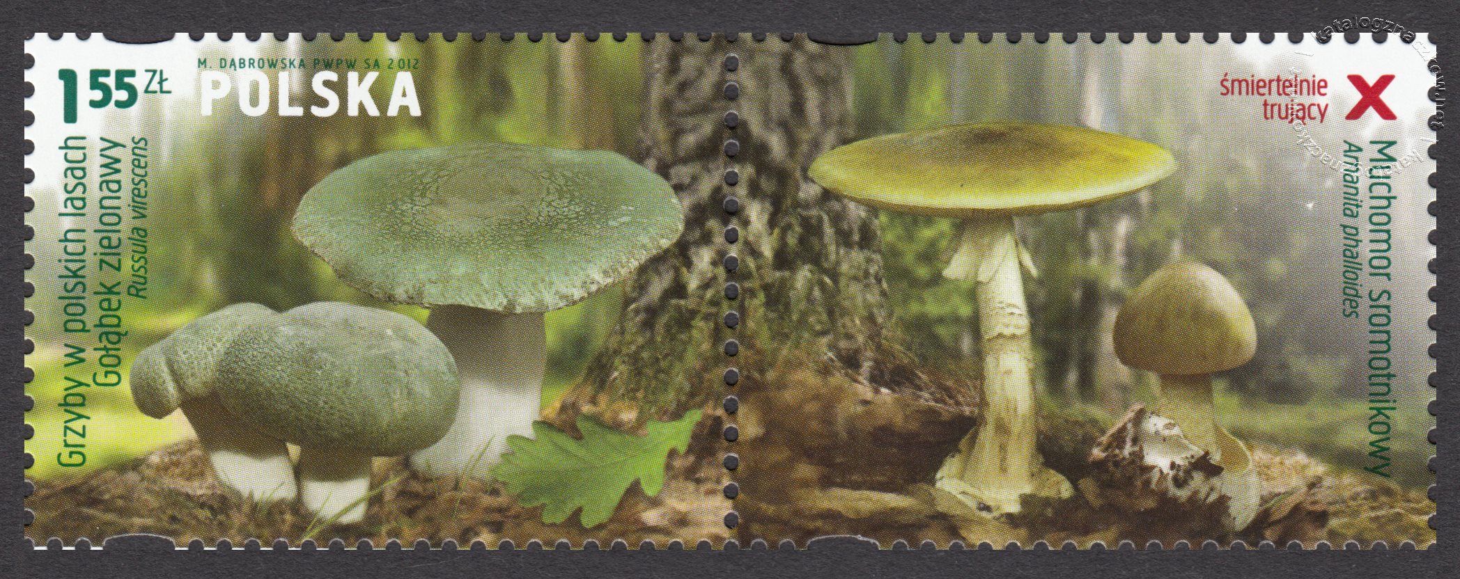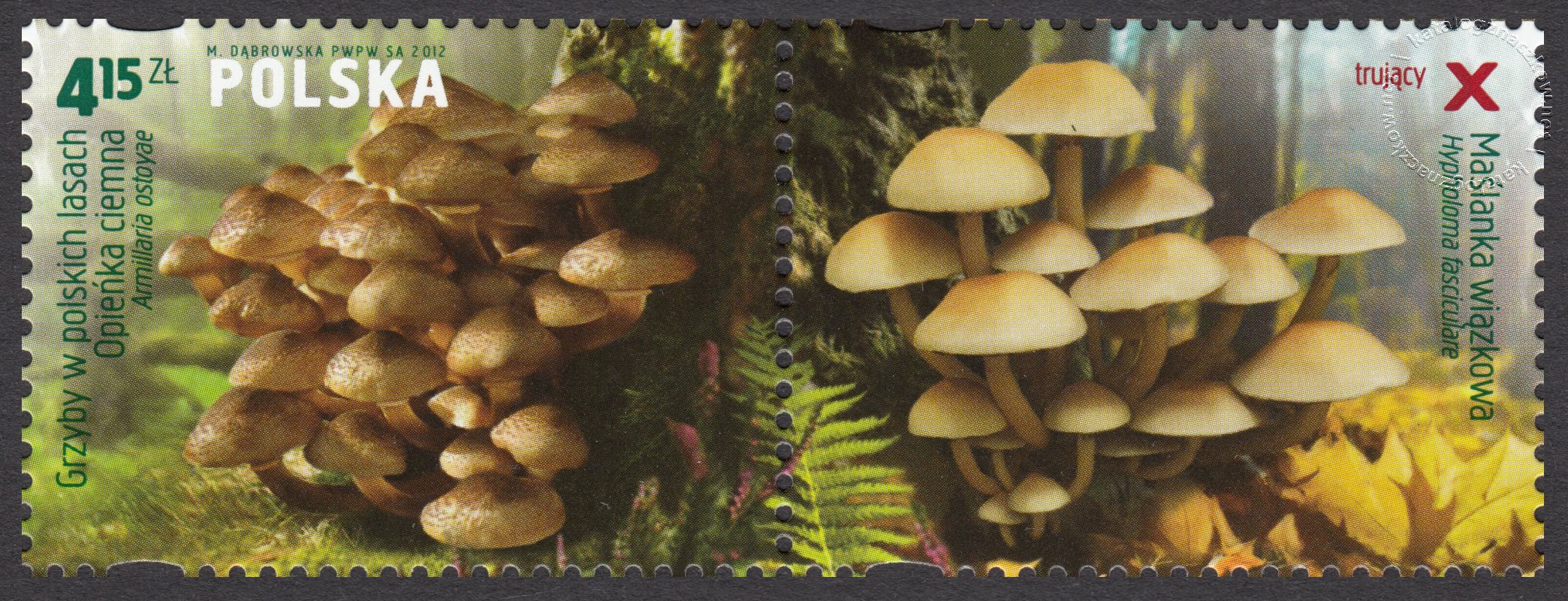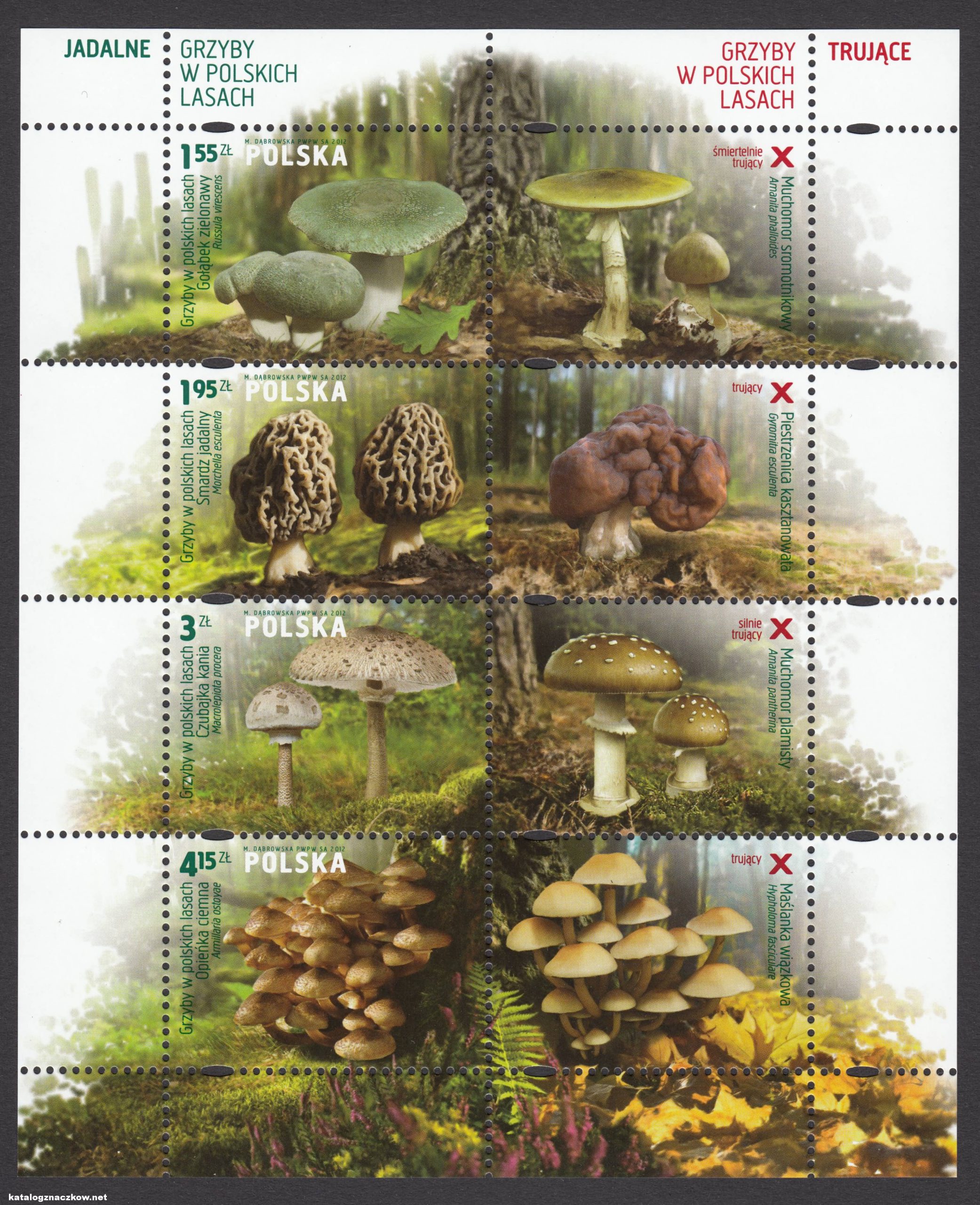 Opis: Na znaczkach przedstawiono grzyby: smardz jadalny, na przywieszce – piestrzenica kasztanowata