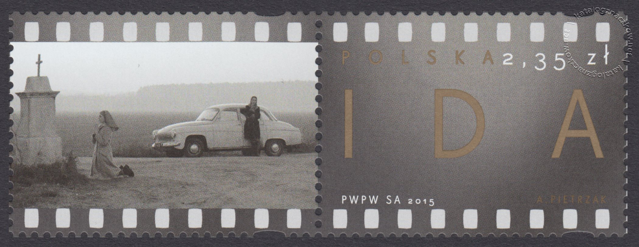 Opis: Tytuł filmu Ida w symbolicznym kadrze. Na przywieszce – scena z filmu.