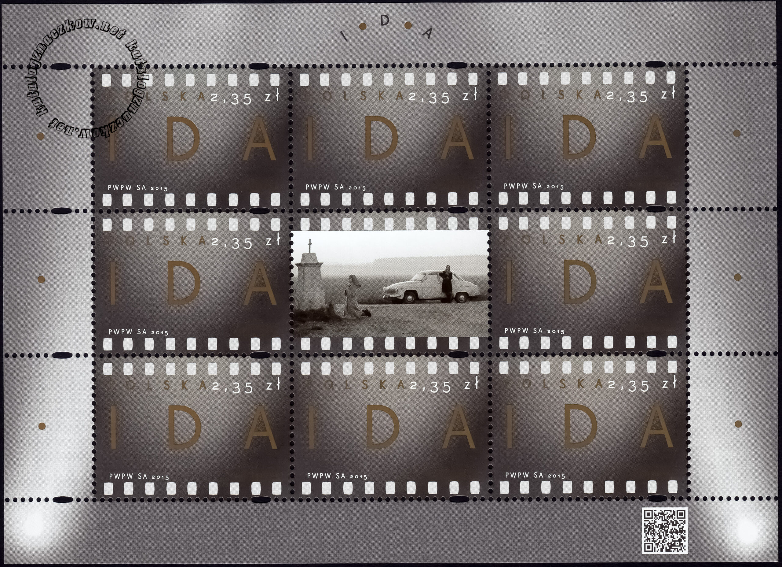 Opis: Tytuł filmu Ida w symbolicznym kadrze. Na przywieszce – scena z filmu.