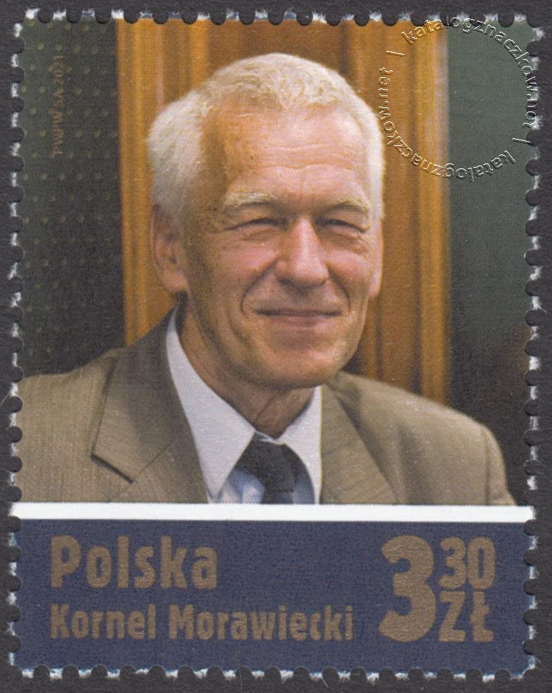 Opis: Na znaczku przedstawiono Kornela Morawieckiego. W lewym dolnym rogu znaczka umieszczono napis: Polska oraz napis: ,,Kornel Morawiecki”, natomiast w prawym dolnym rogu umieszczono oznaczenie nominału 3,30 ZŁ.