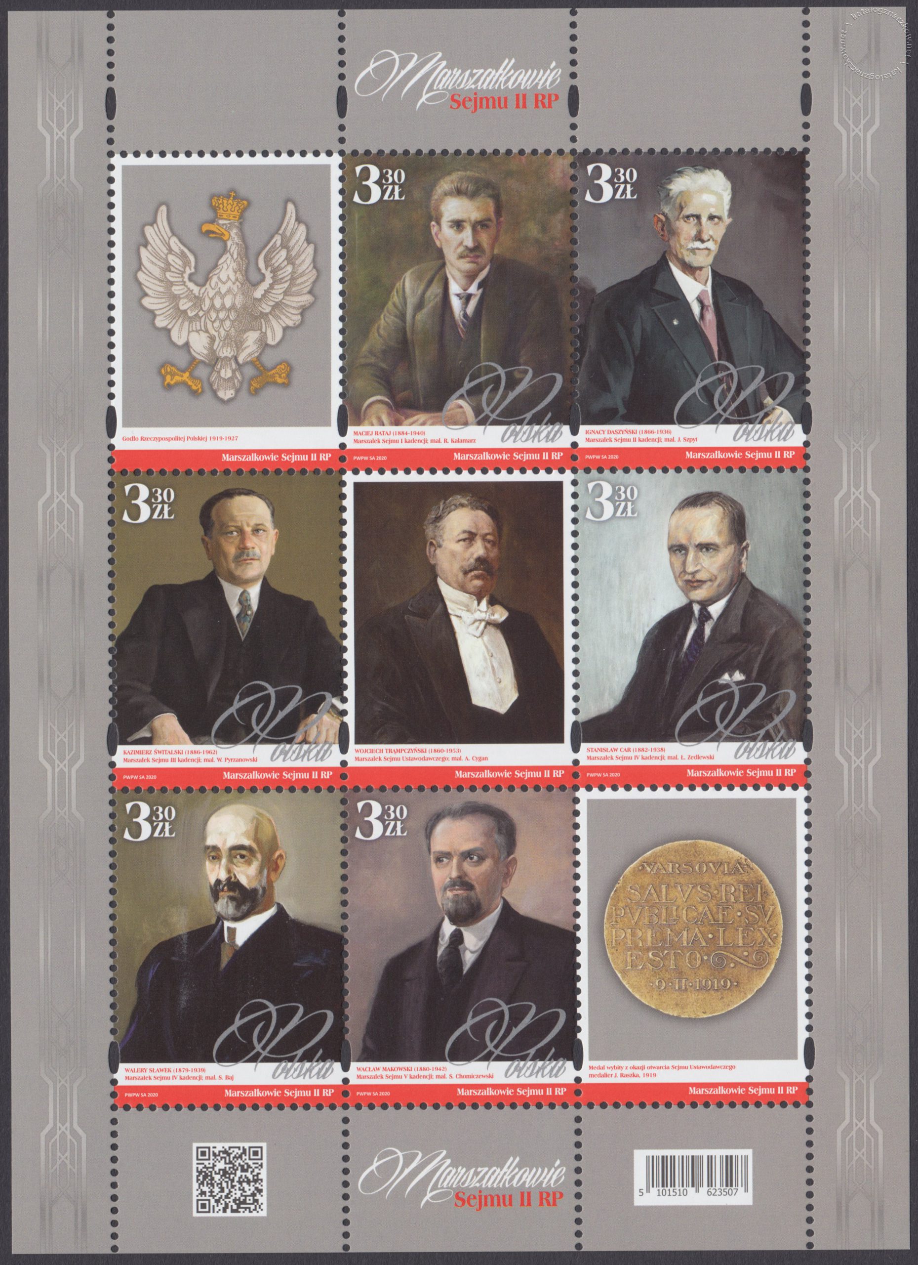 Opis: Na znaczkach przedstawiono wizerunki Marszałków II RP: Stanisław Car