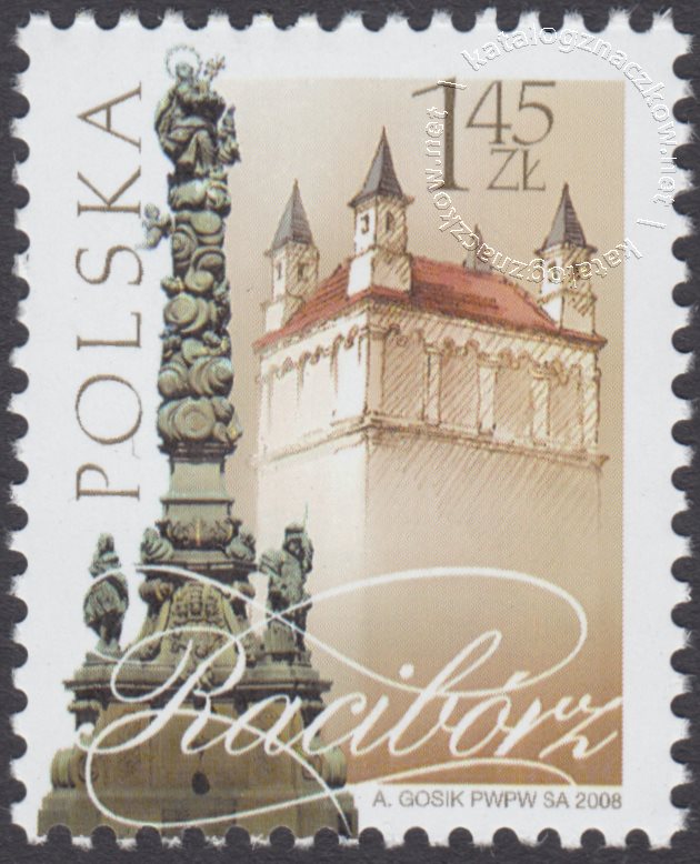 Opis: Baszta miejska i Kolumna Maryjna z postaciami św. Marcelego, św. Sebastiana i św. Floriana w Raciborzu