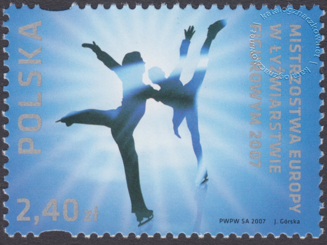 Opis: Sylwetki pary łyżwiarzy w promieniach reflektorów