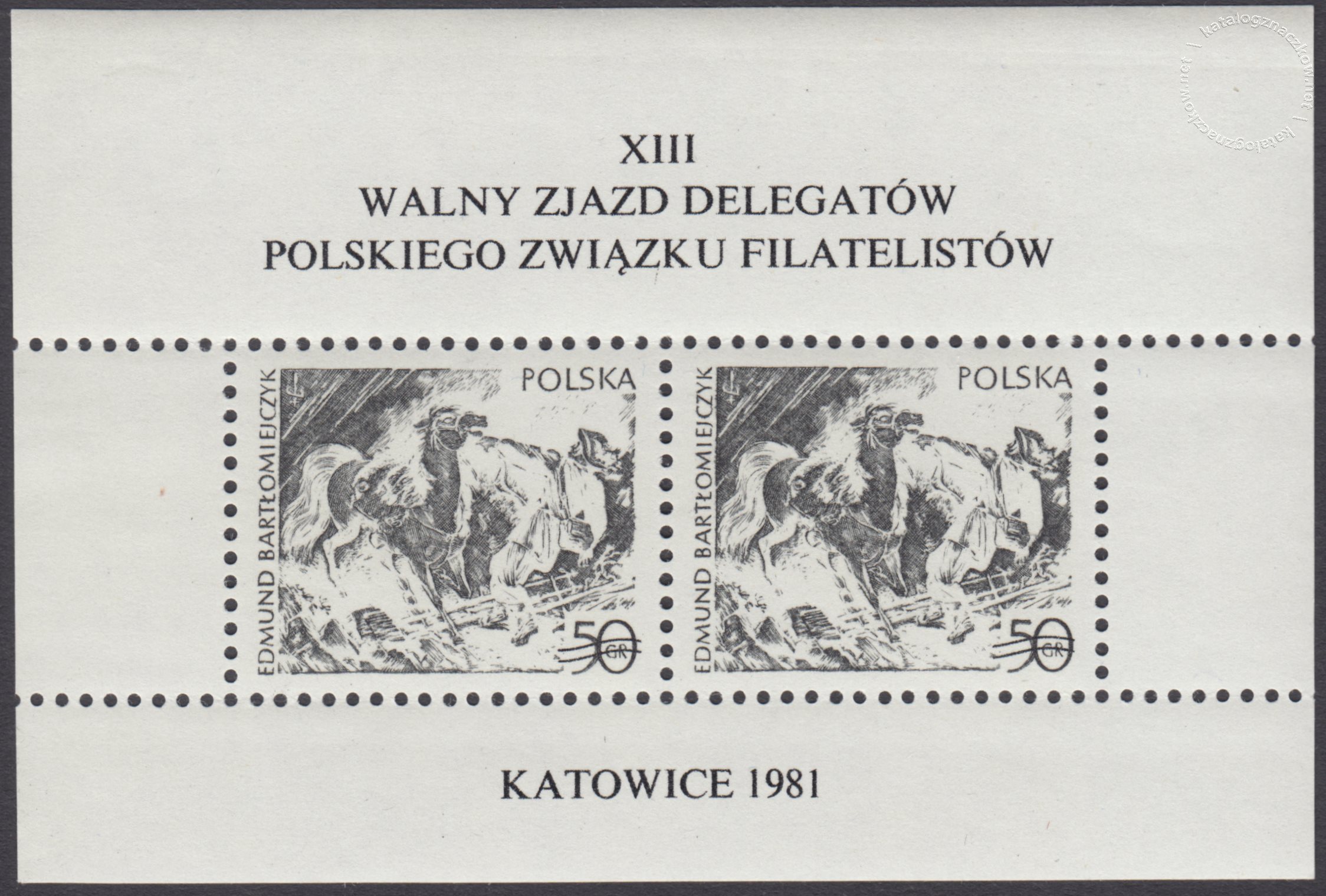 Opis: Błyskawice Edmunda Bartłomiejczyka w bloku z przekreślonym nominałem w barwie czarnej