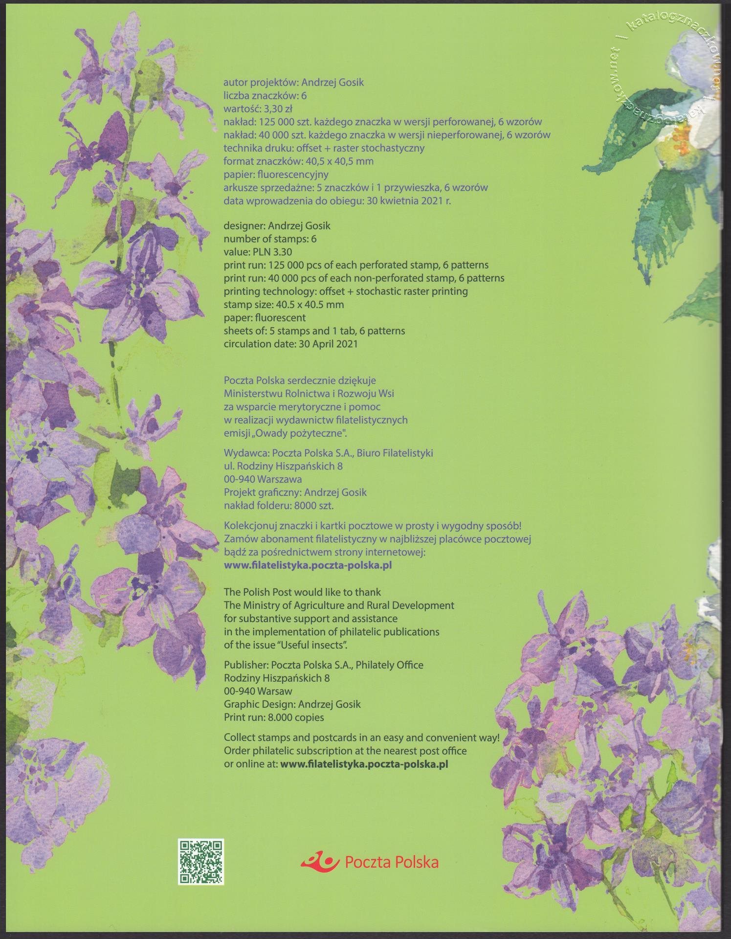 Wydanie znaczków nieperforowanych emisji ,,Owady pożyteczne” było dostępne w sprzedaży jedynie w folderze filatelistycznym. Zdjęcia poniżej.