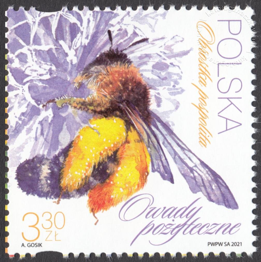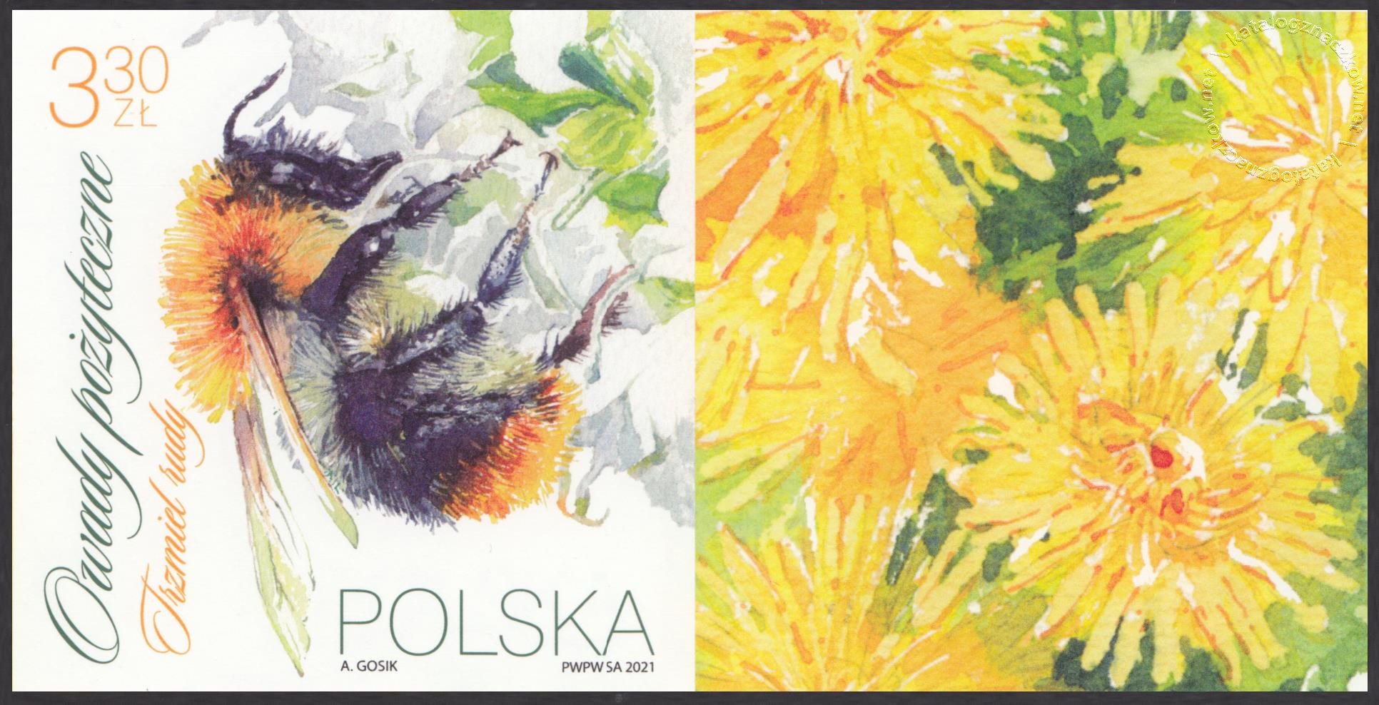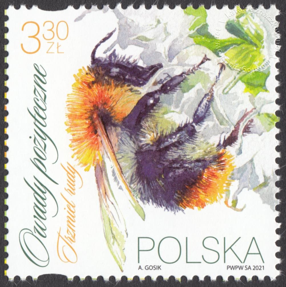 Opis: Na znaczku malowanym techniką akwareli zaprezentowano: Trzmiela rudego