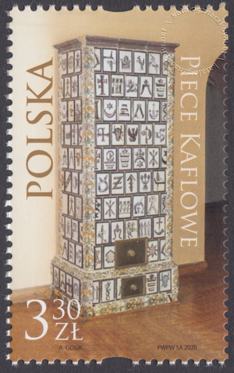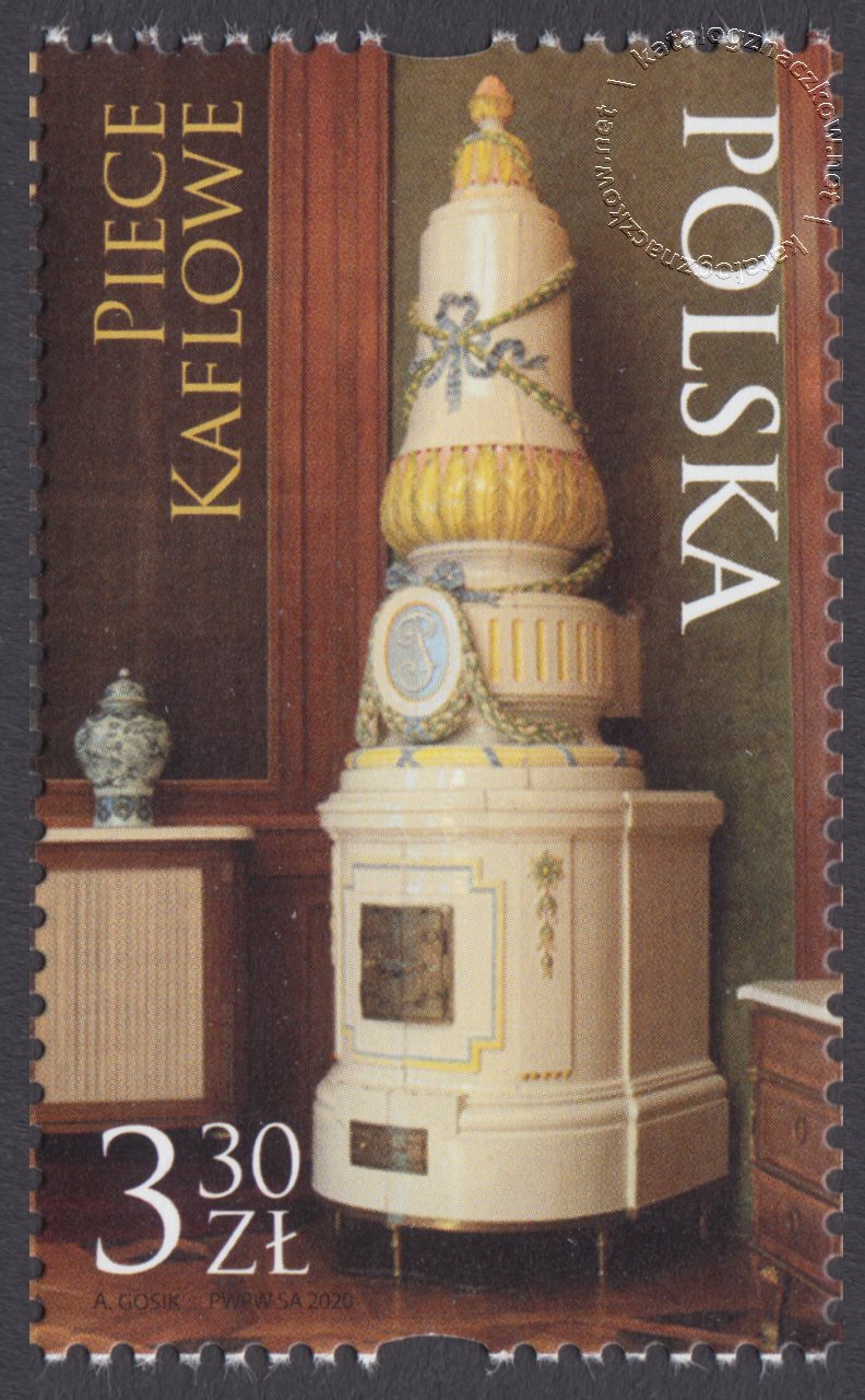 Opis: Na poszczególnych znaczkach przedstawiono historyczne piece kaflowe znajdujące się w zamkach i pałacach na terenie Polski: piec neorokokowy z końca XIX w., znajdujący się w Zamku Potockich w Łańcucie