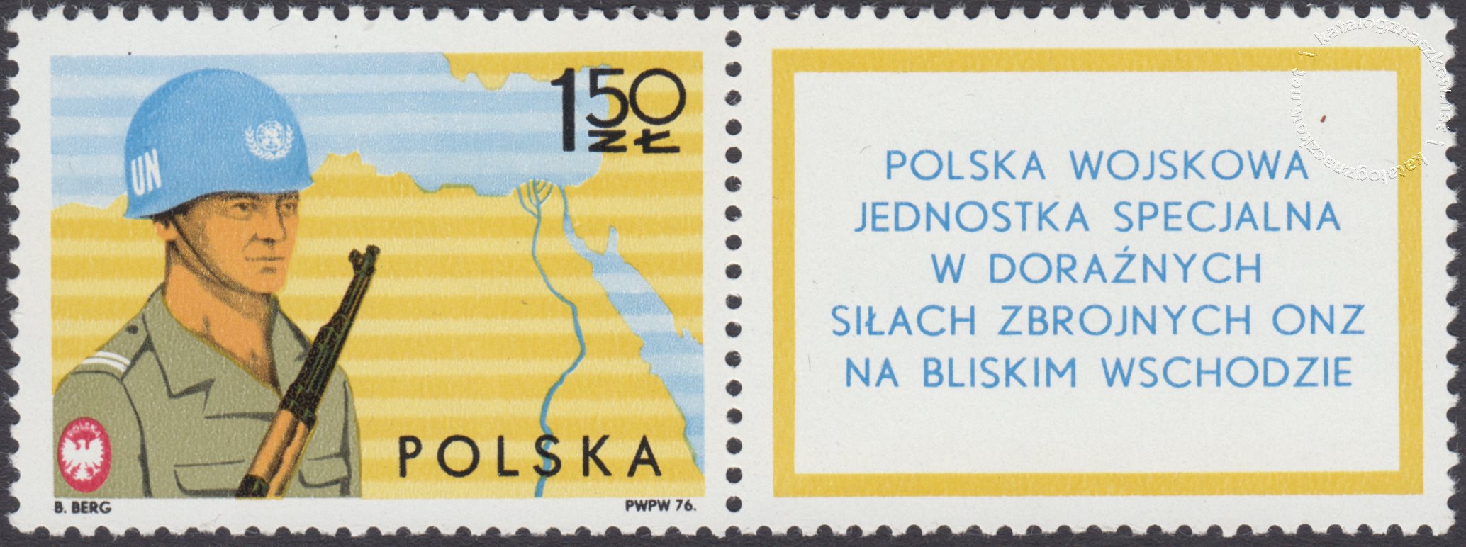 Opis: Polski żołnierz oraz fragment mapy bliskiego Wschodu