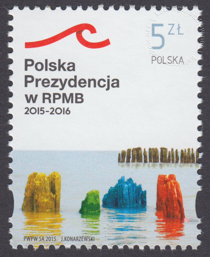 Opis: Znak Polskiej Prezydencji W Radzie Państw Morza Bałtyckiego i artystyczne formy przestrzenne na wybrzeżu Bałtyku