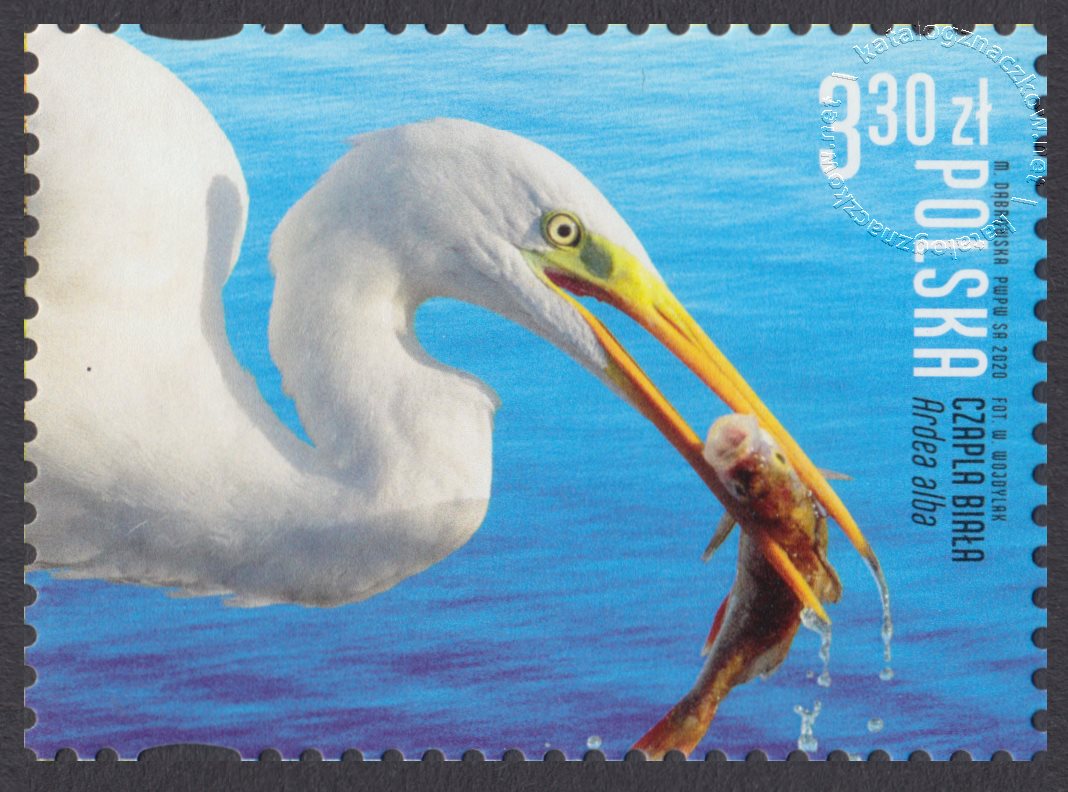 Opis: Ptaki brodzące: czapla biała Ardea alba; na przywieszce czapla biała wzbijająca się do lotu