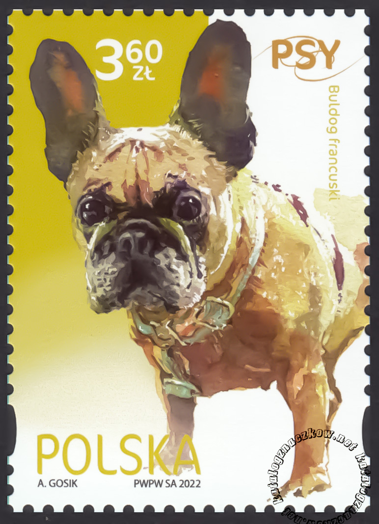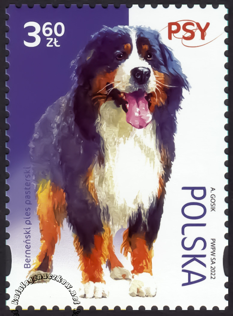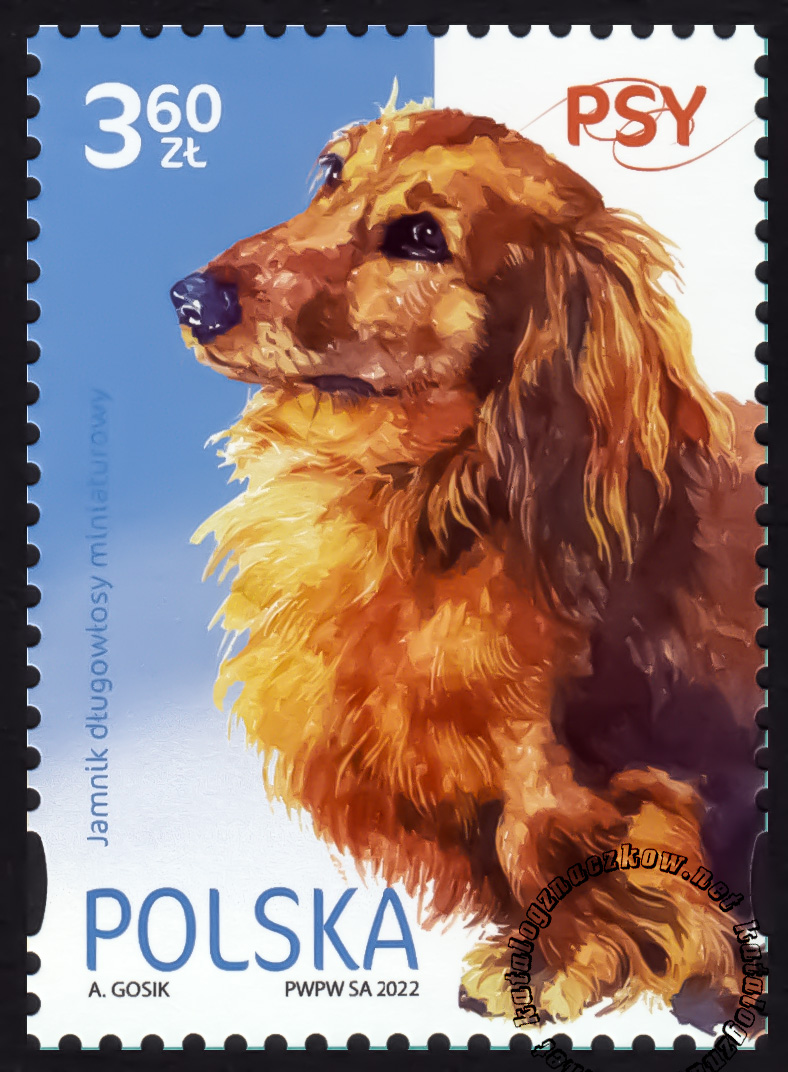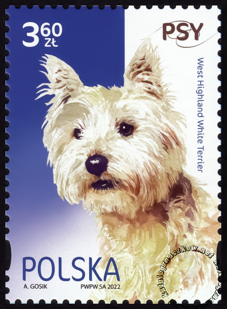 Opis: Rasy psów: Berneński pies pasterski, Golden Retriver, Seter szkocki, Buldog francuski, West Highland White Terrie, Jamnik długowłosy miniaturowy.