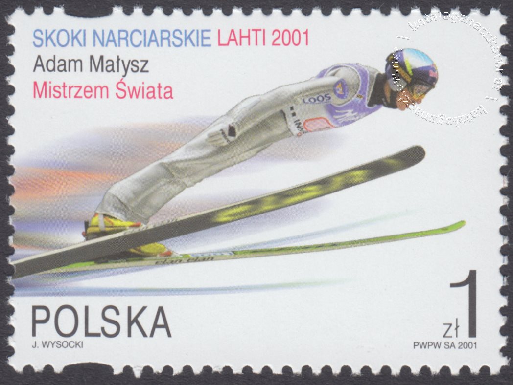 Opis: Skoki narciarskie Lahti 2001 / Adam Małysz / Mistrzem Świata