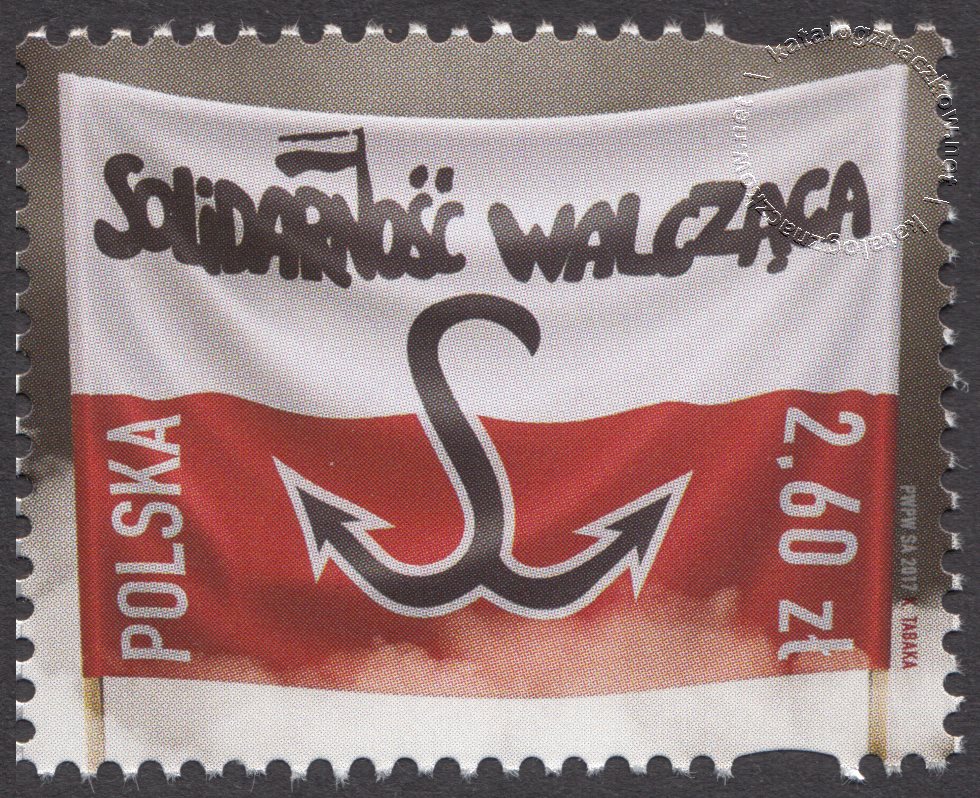 Opis: Biało-czerwona flaga z napisem Solidarność Walcząca