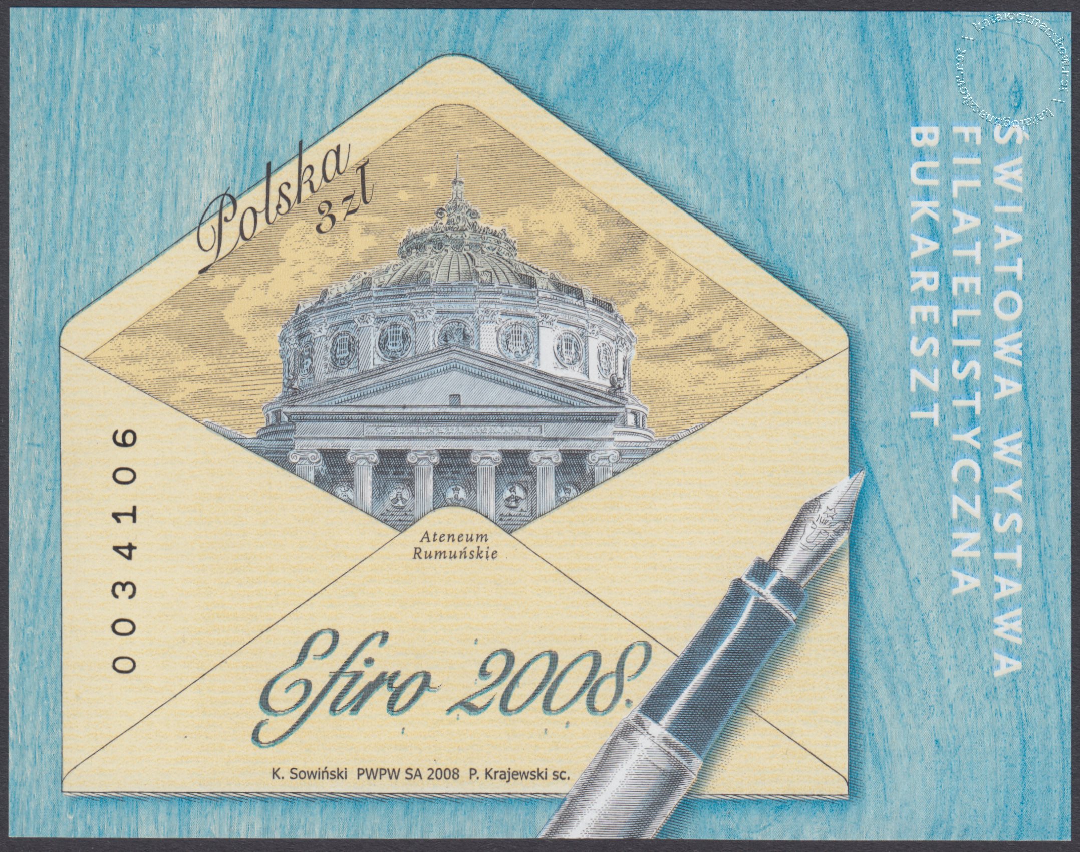 Opis: Ateneum Rumuńskie na tle koperty
