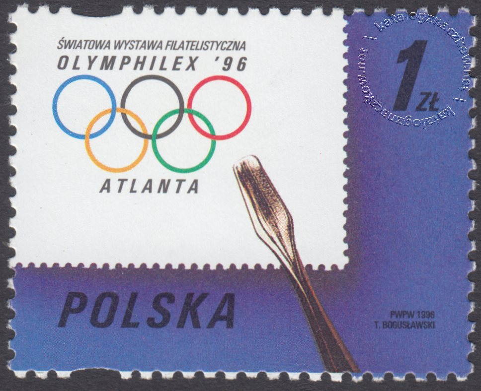 Opis: Znaczek z rysunkiem pięciu kółek olimpijskich