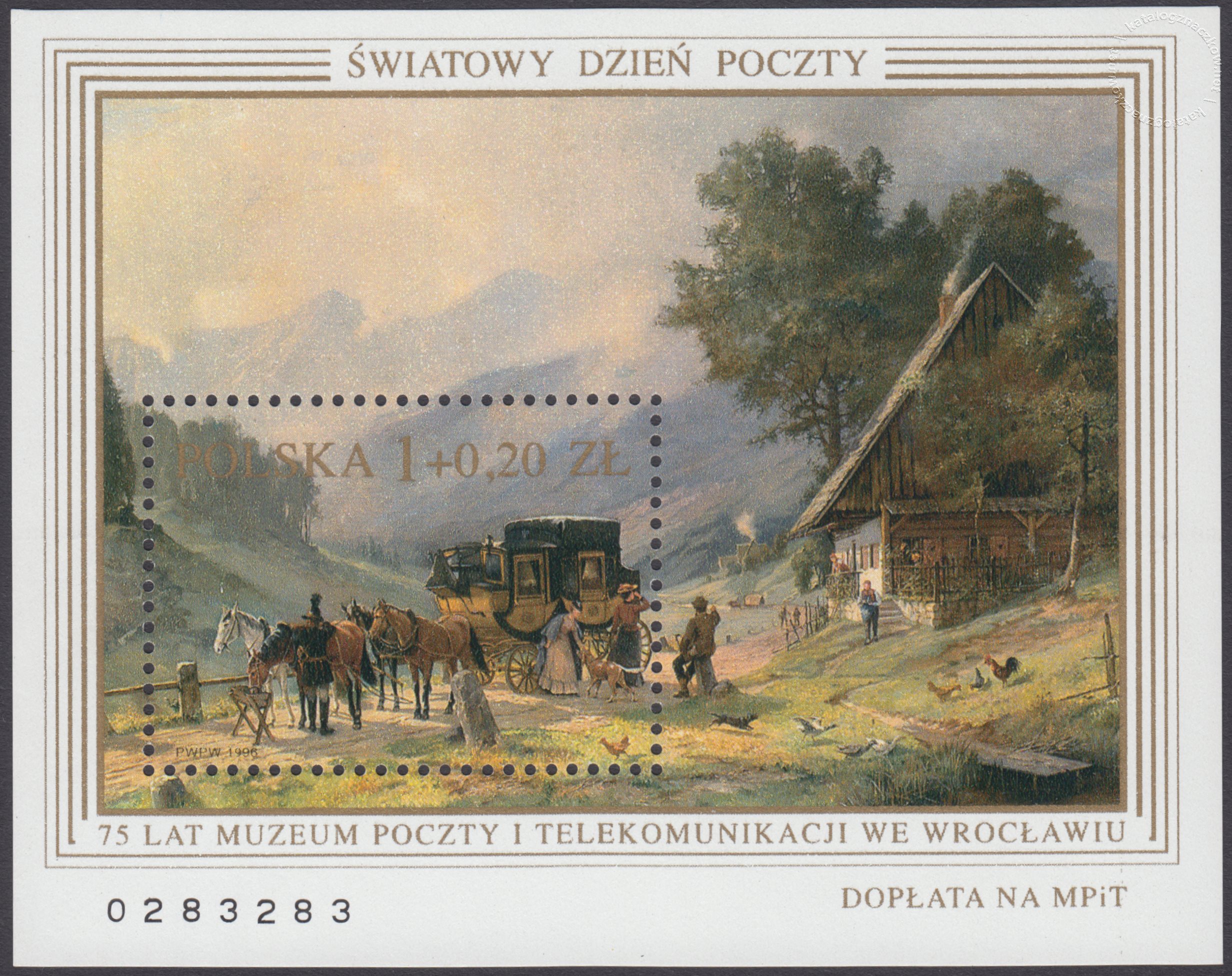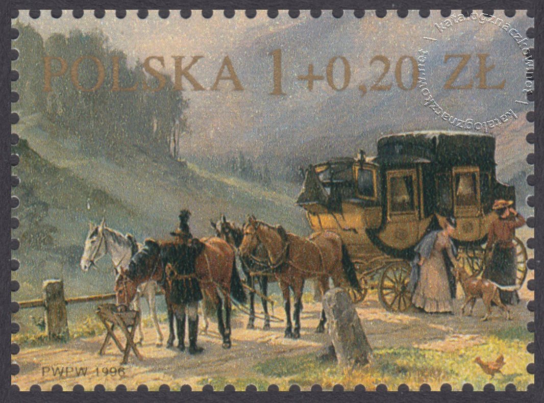 Opis: Obraz prof. Tagera Poczta wozowa w Jagniątkowie z widokiem na Karkonosze
