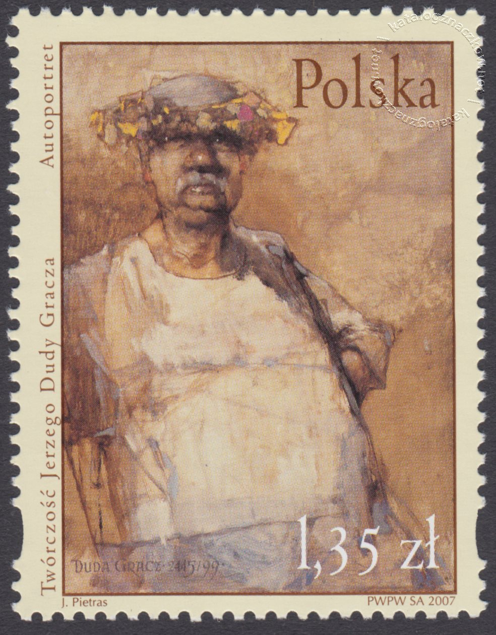 Opis: Na znaczku przedstawiono autoportret Jerzego Dudy Gracza