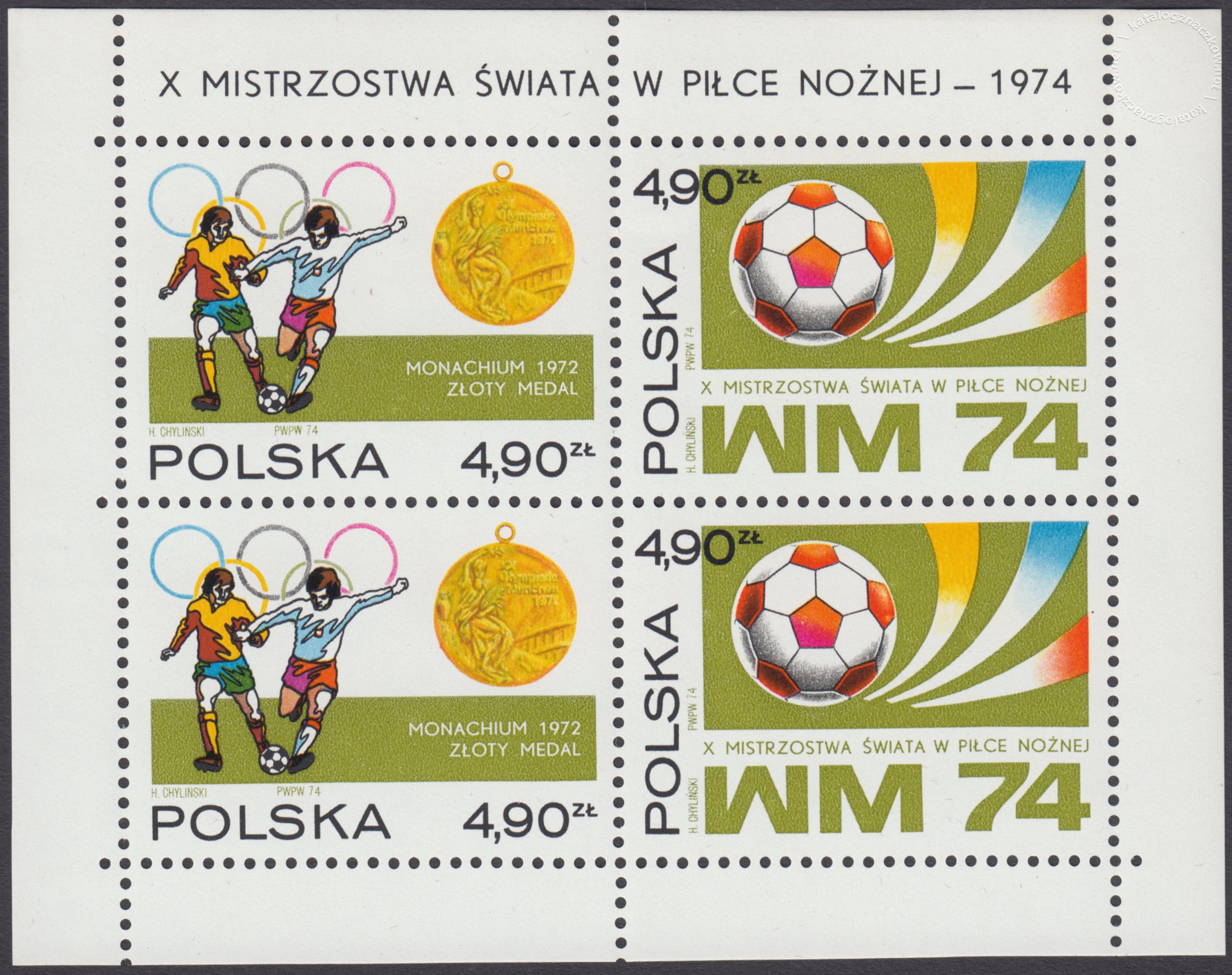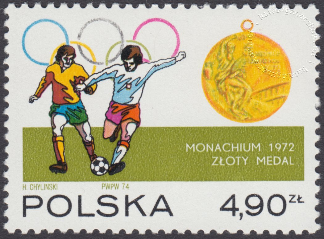 Opis: 2168 – Sylwetki piłkarzy oraz złoty medal, 2169 – Piłka nożna