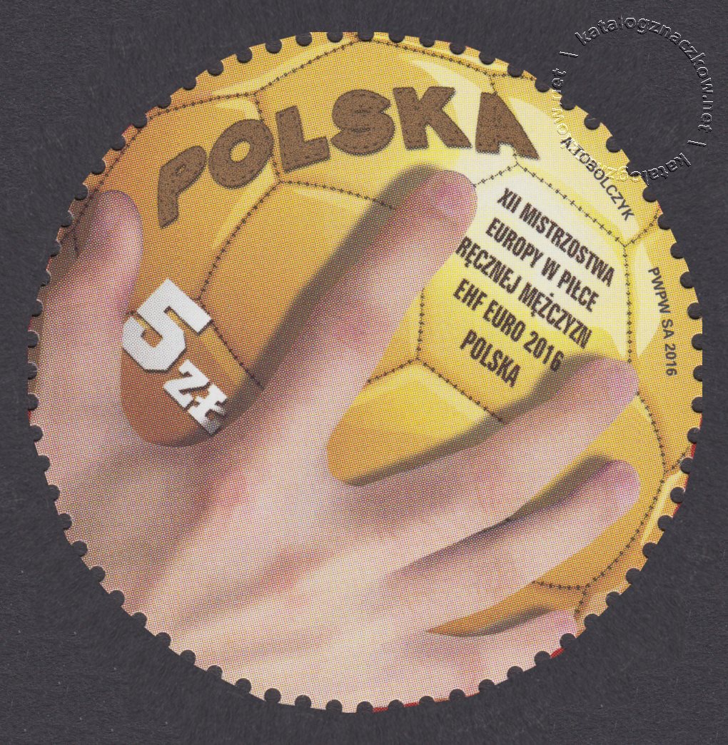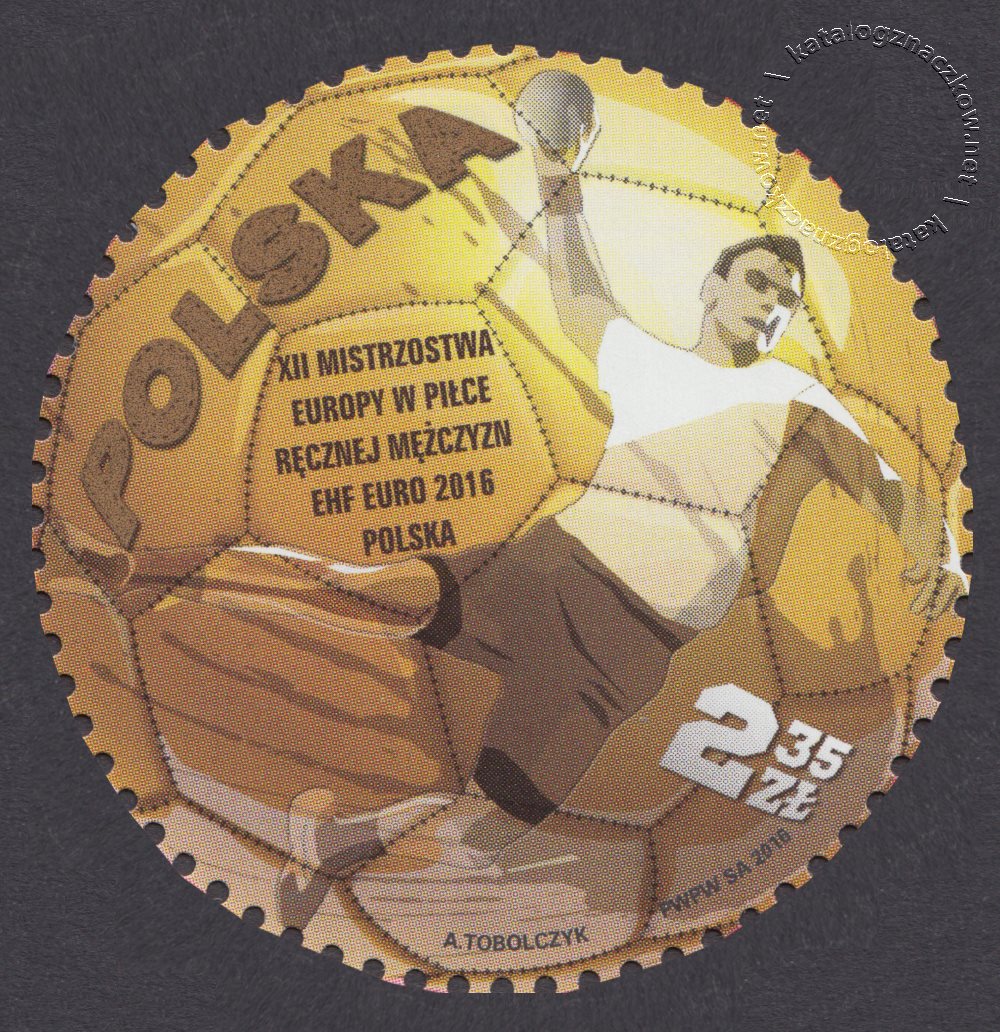 Opis: Piłka ręczna a na jej tle postać zawodnika w ataku.