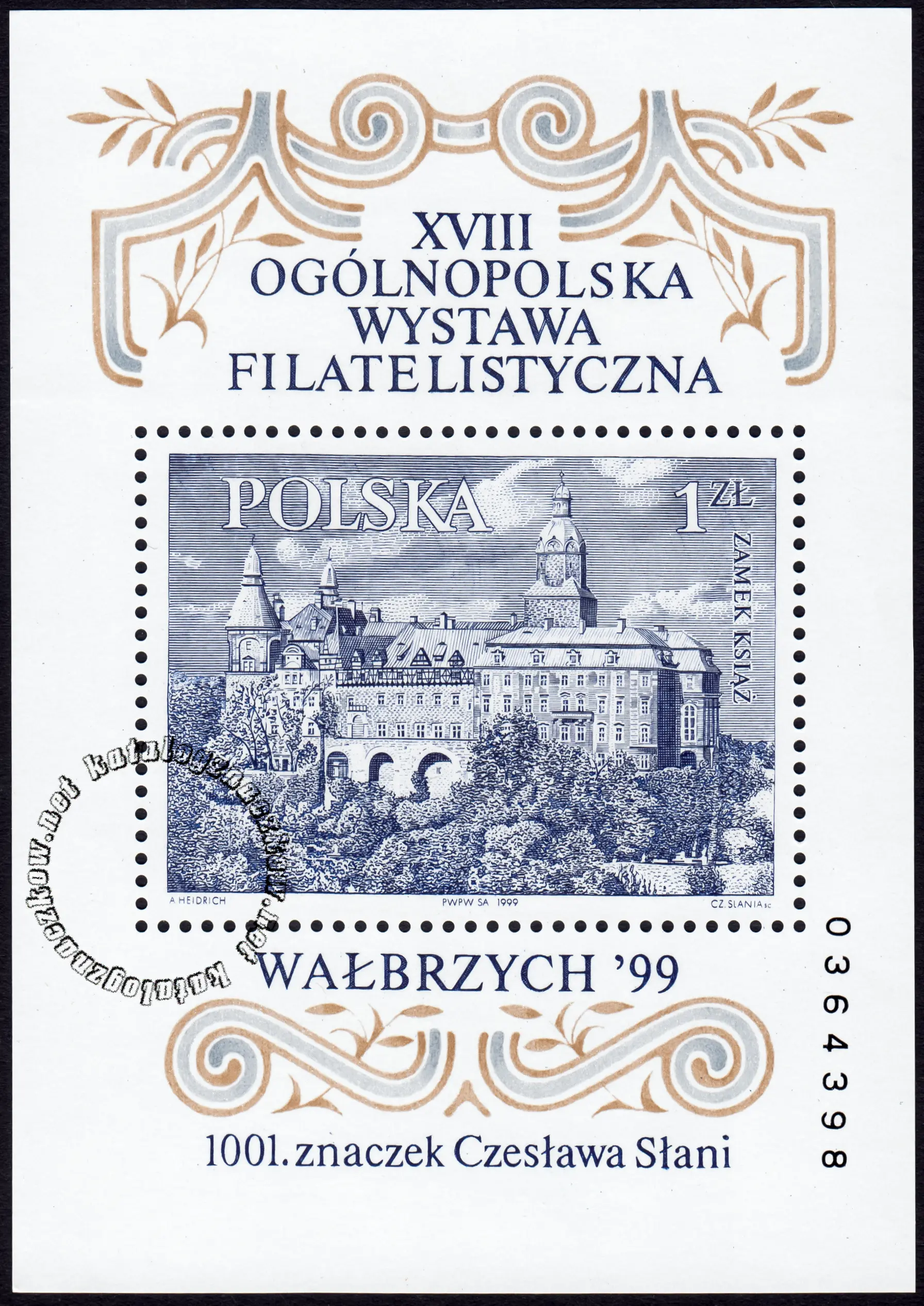 Aktualna cena, watrość, wycena, oferty sprzeaży znaczka: XVIII Ogólnopolska Wystawa Filatelistyczna Wałbrzych 99 – Blok 122B