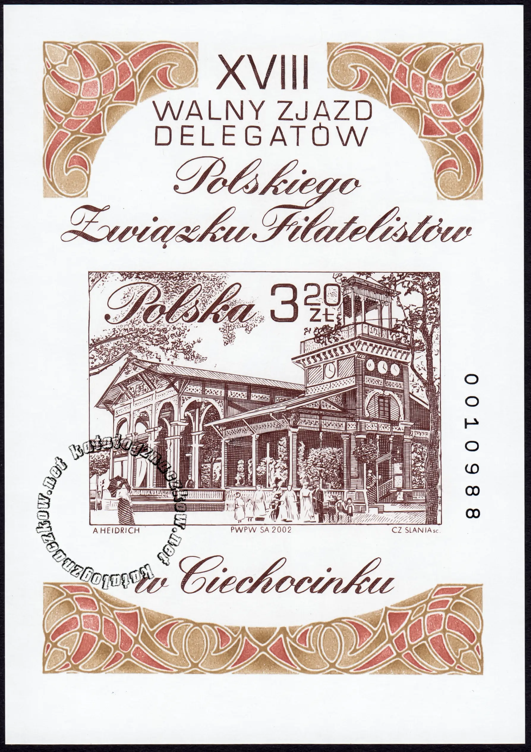 Aktualna cena, watrość, wycena, oferty sprzeaży znaczka: XVIII Walny Zjazd Delegatów Polskiego Związku Filatelistów w Ciechocinku – Blok 134A