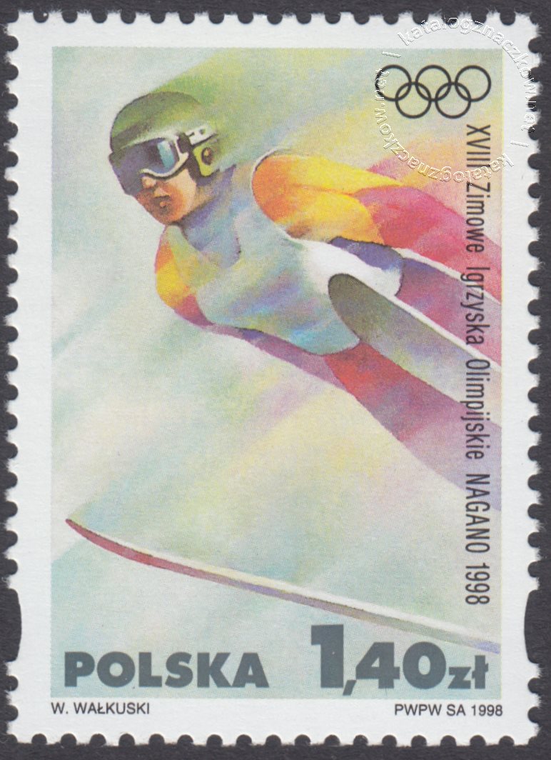 Opis: Skoczek narciarski i znak MKOL