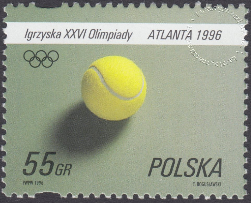 Opis: Piłka tenisowa i znak MKOl