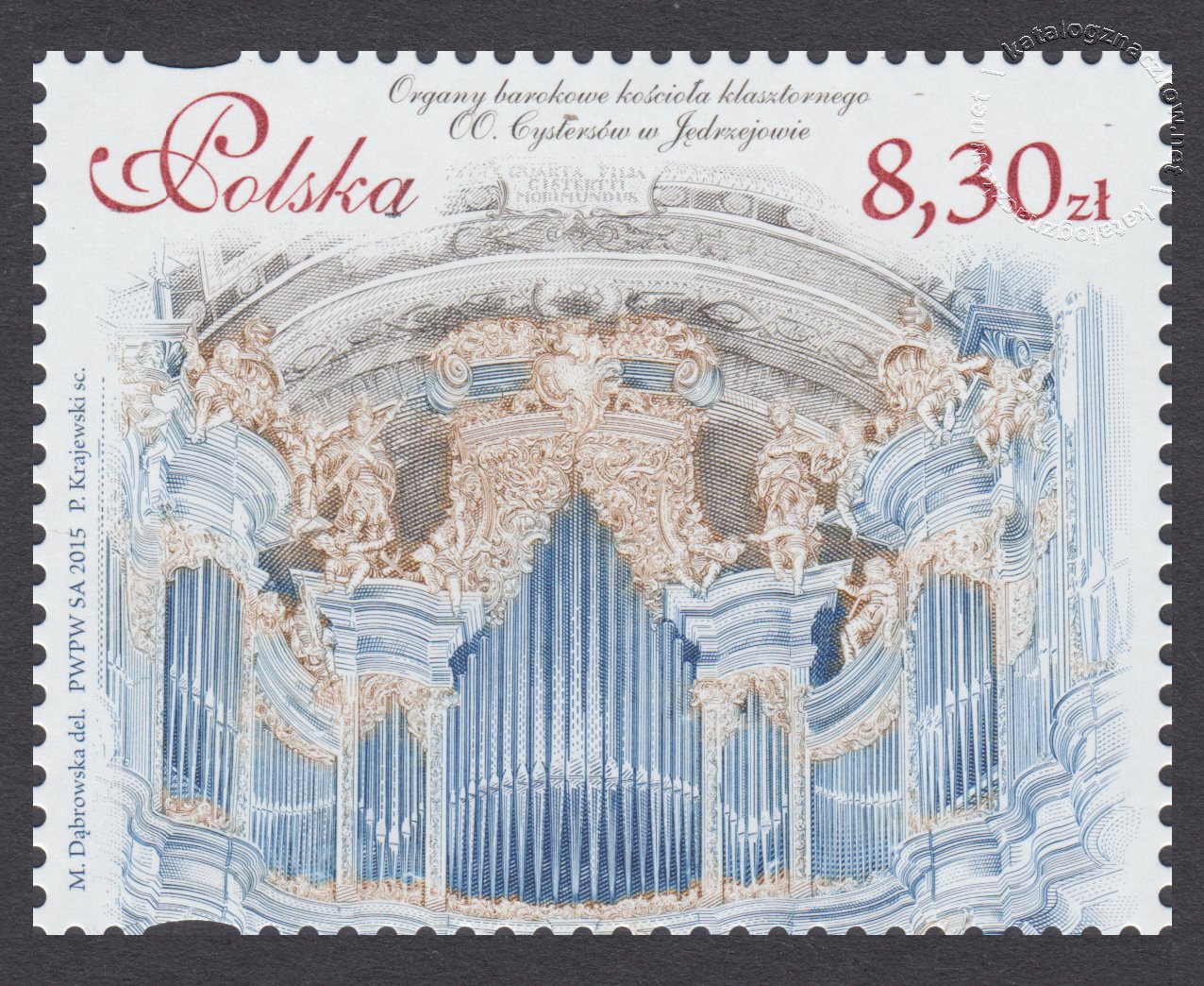 Opis: Organy barokowe z kościoła klasztornego OO. Cystersów w Jędrzejowie – prospekt organów.