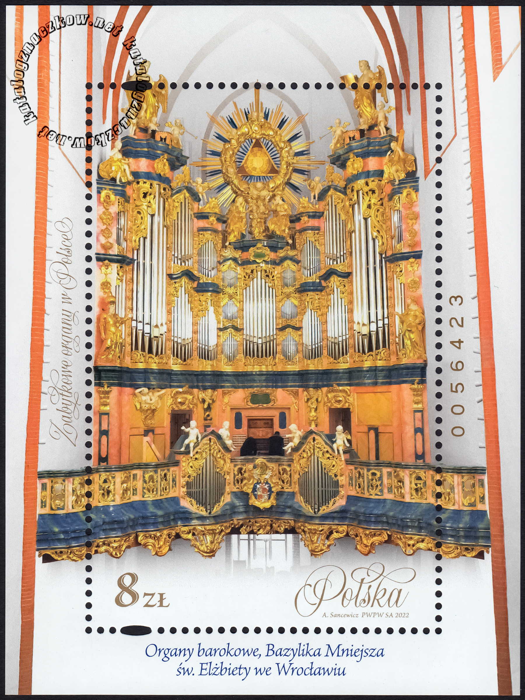 Aktualna cena, watrość, wycena, oferty sprzeaży znaczka: Zabytkowe organy w Polsce – Blok 249
