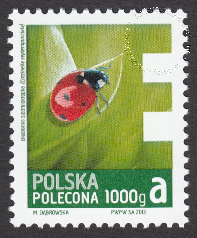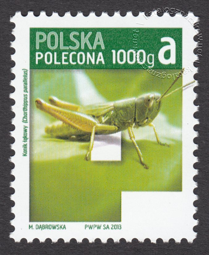 Opis: Stylizowana litera P oraz owad konik łąkowy