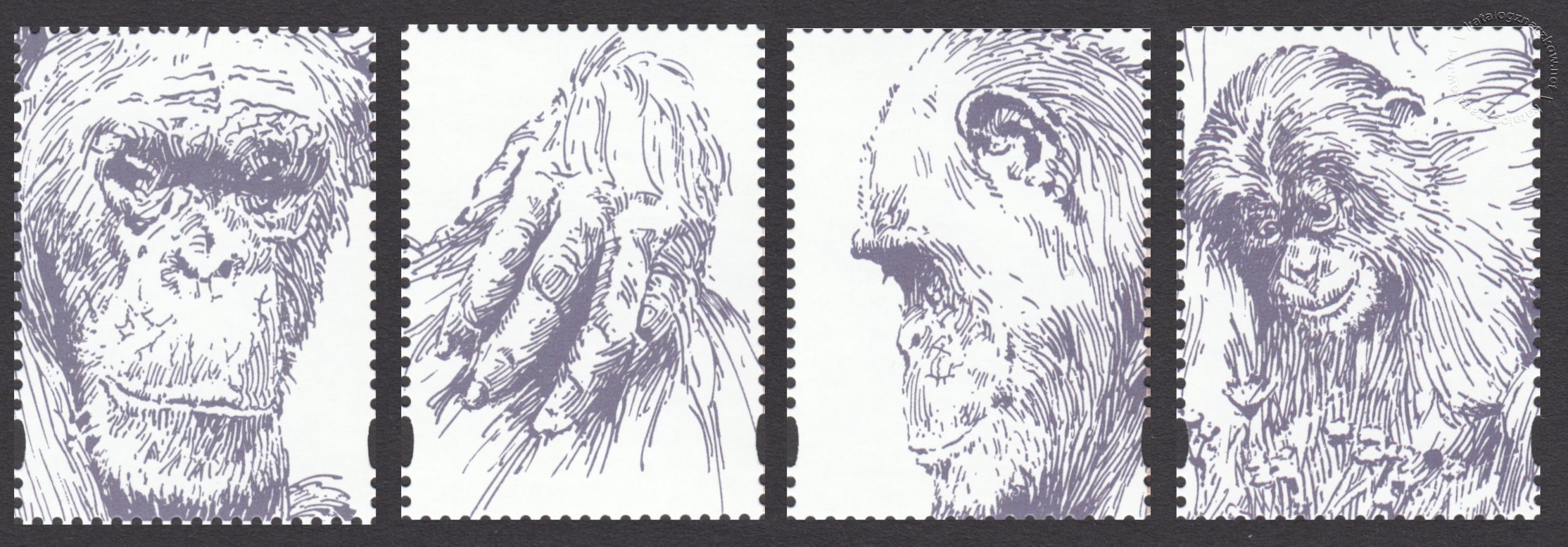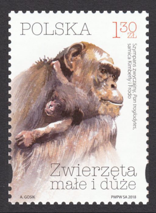 Opis: Na znaczku przedstawiono szympansa zwyczajnego